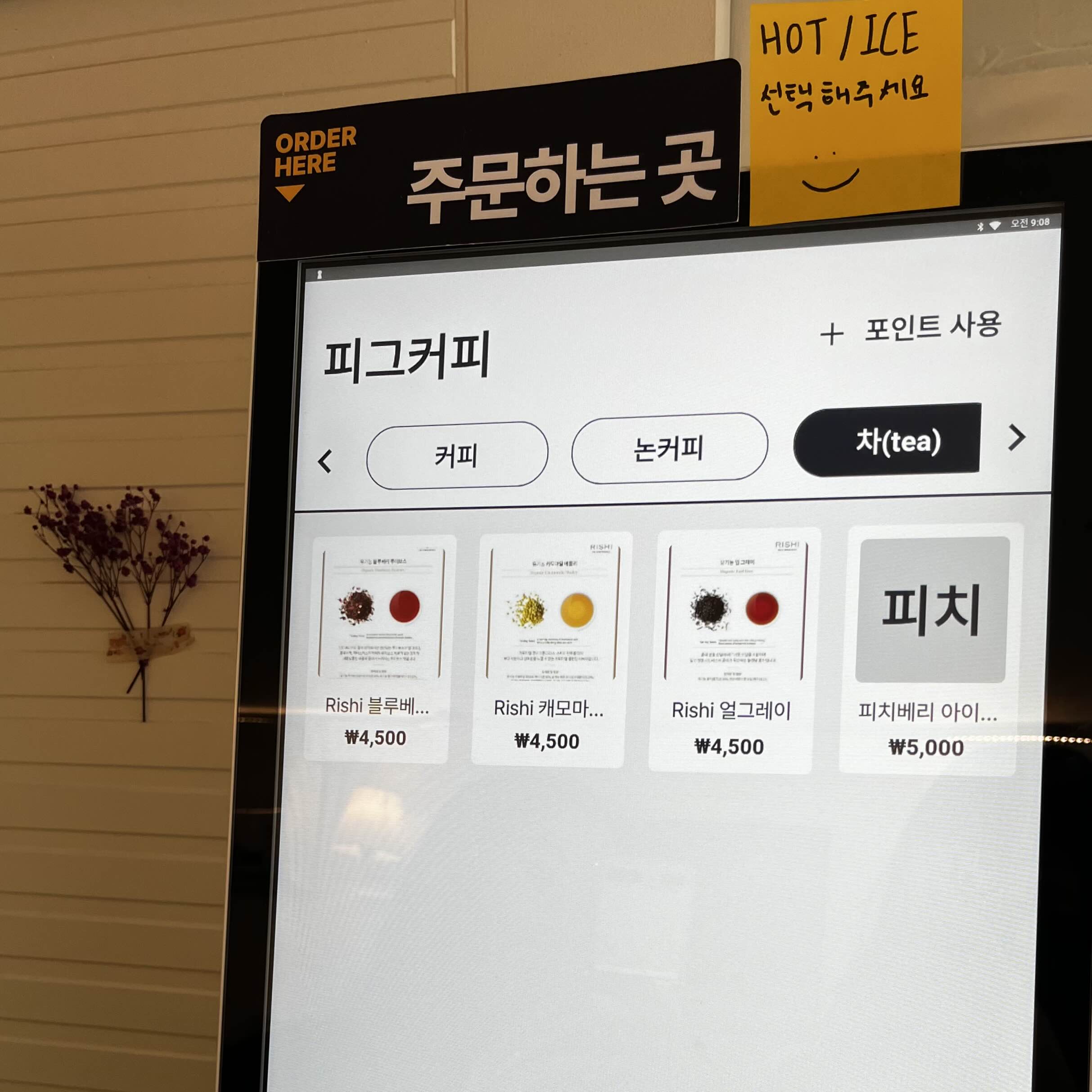 지금은 요즘 카페 트렌드인 키오스크 주문 시스템으로 바뀐 상황입니다