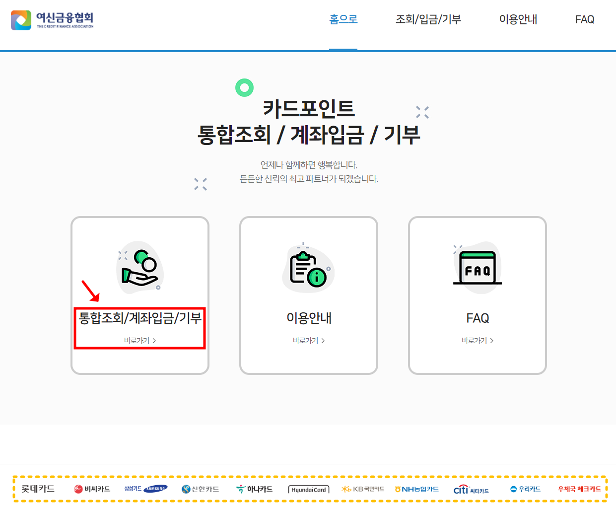 *페이지 하단에서 통합조회가 가능한 카드사의 정보를 간략히 확인하실 수 있습니다