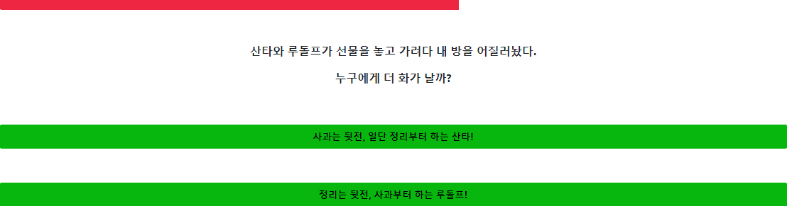 저는 "방을 어지른 상황"에 화가 났기 때문에 무조건 루돌프 선택!🦌