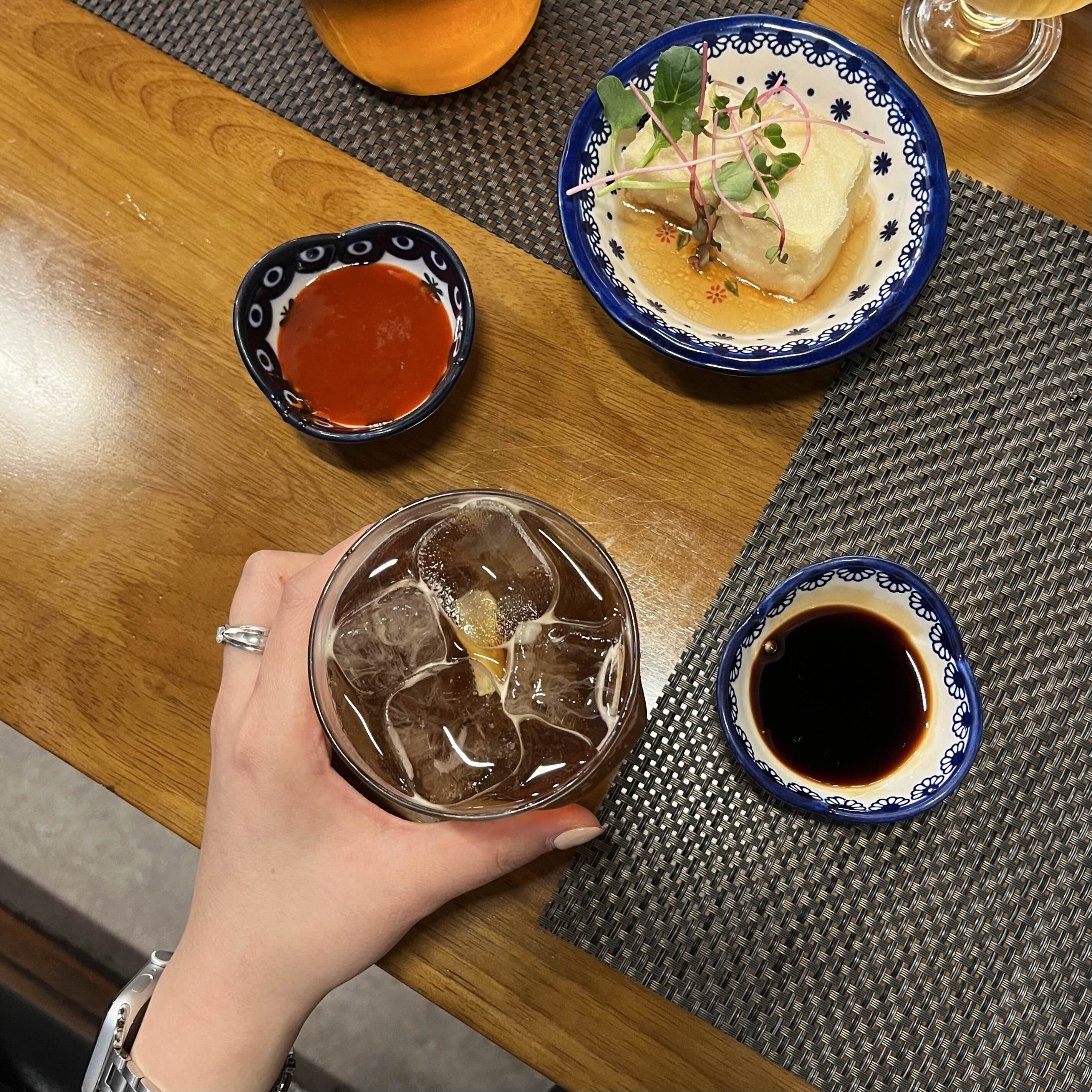 꼬소한 튀김옷을 입은 보들보들한 연두부를 접시 아래쪽에 깔린 달달한 간장과 함께 냠냠💚