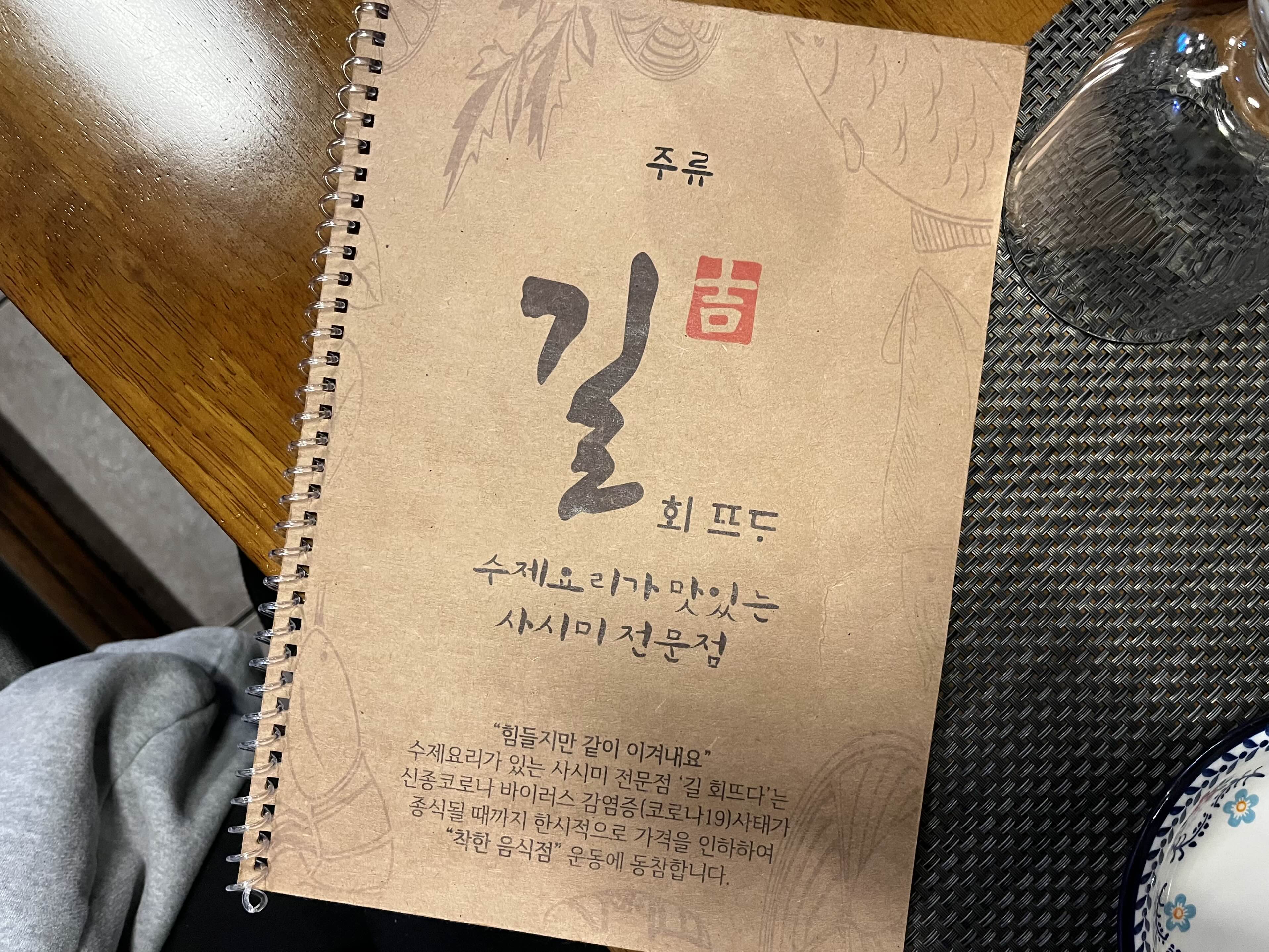입구에서 길 회뜨다의 전체 메뉴와 오늘의 사이드 메뉴를 확인하실 수 있습니다🧐