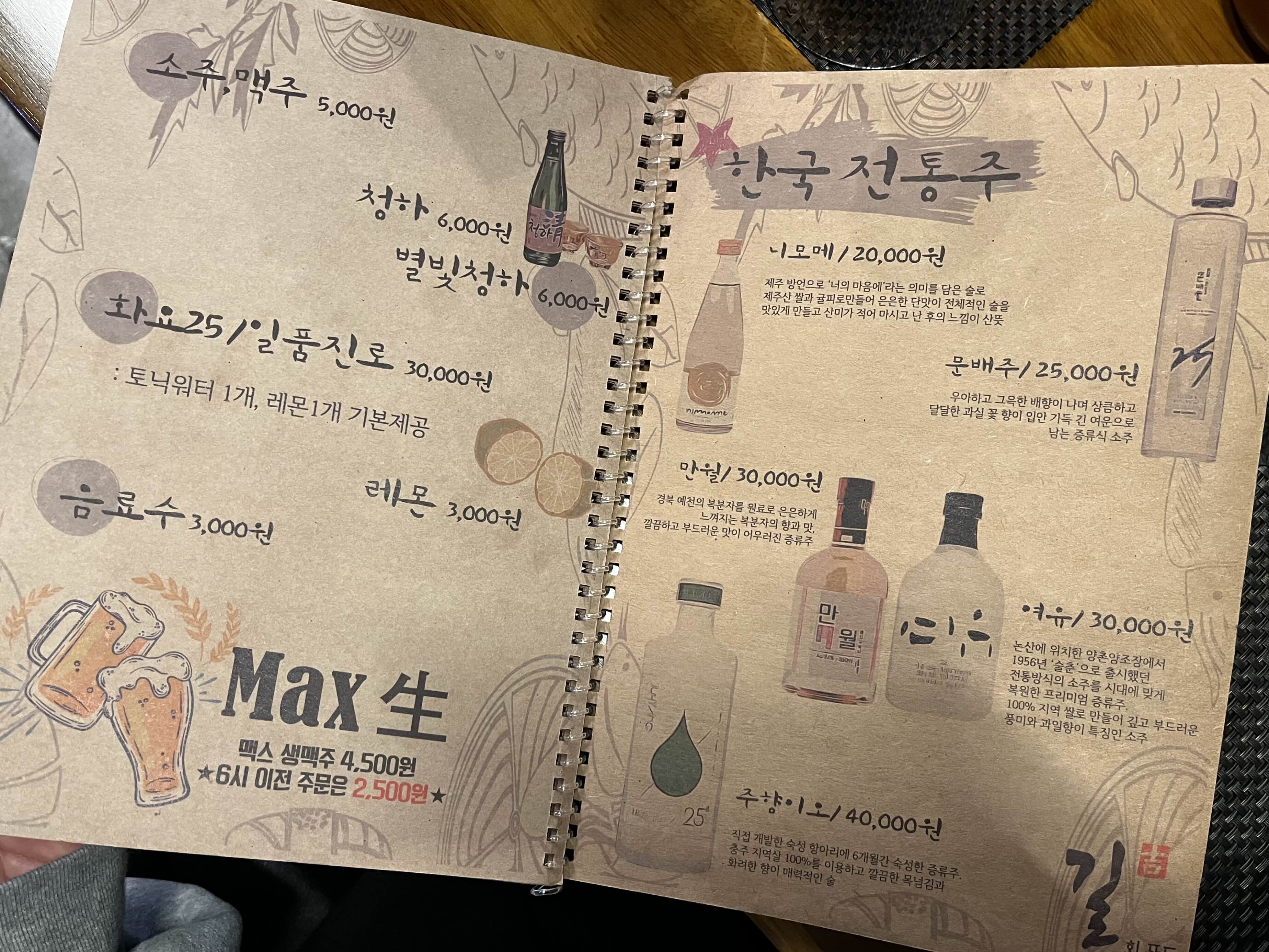 - 영업시간 : 매일 17:00 ~ 새벽 02:00 매주 일요일 정기휴무