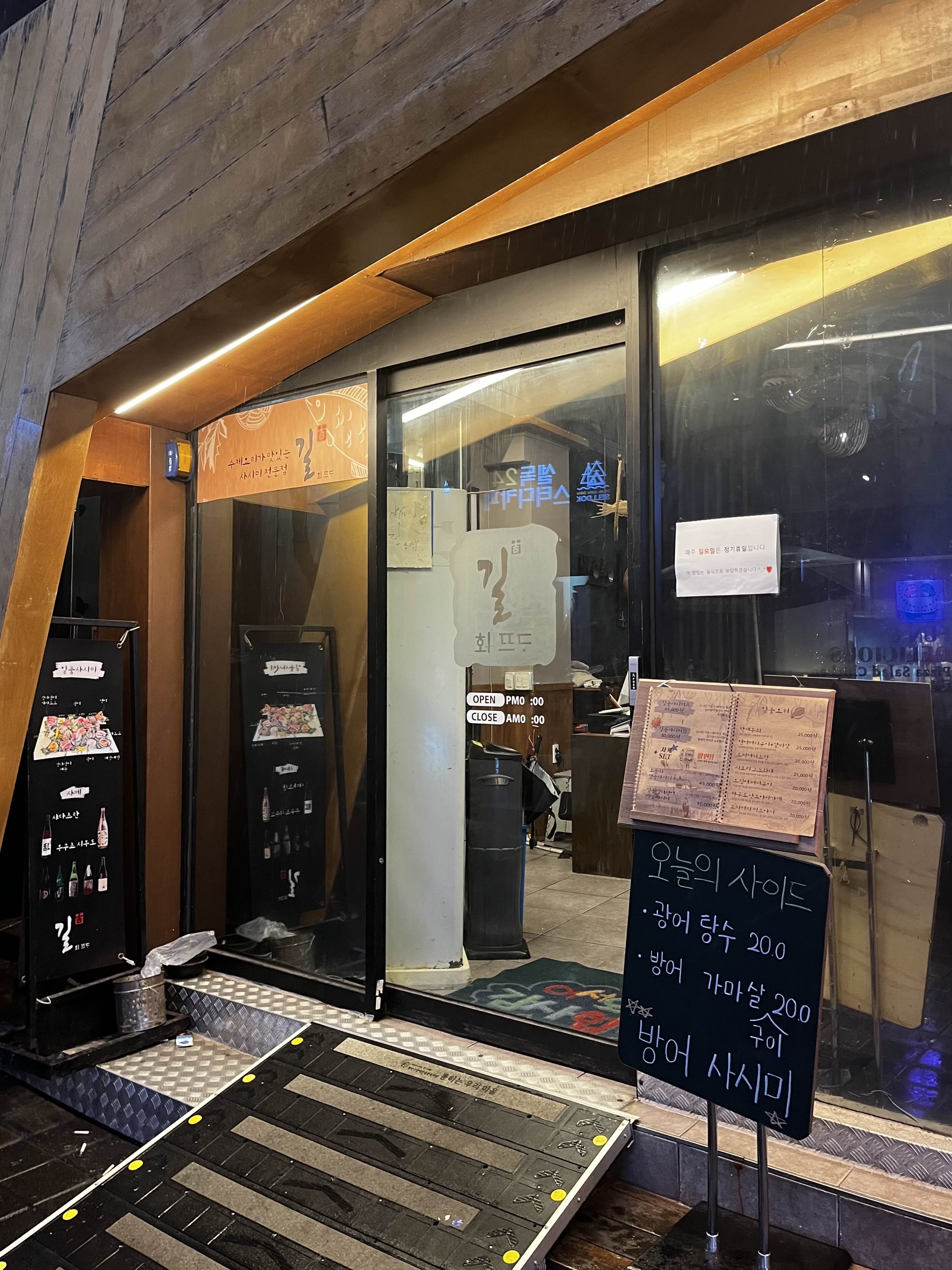 "길 회뜨다"는 2호선 신림역 3번 출구 근처에서 유일무이한 횟집이에요