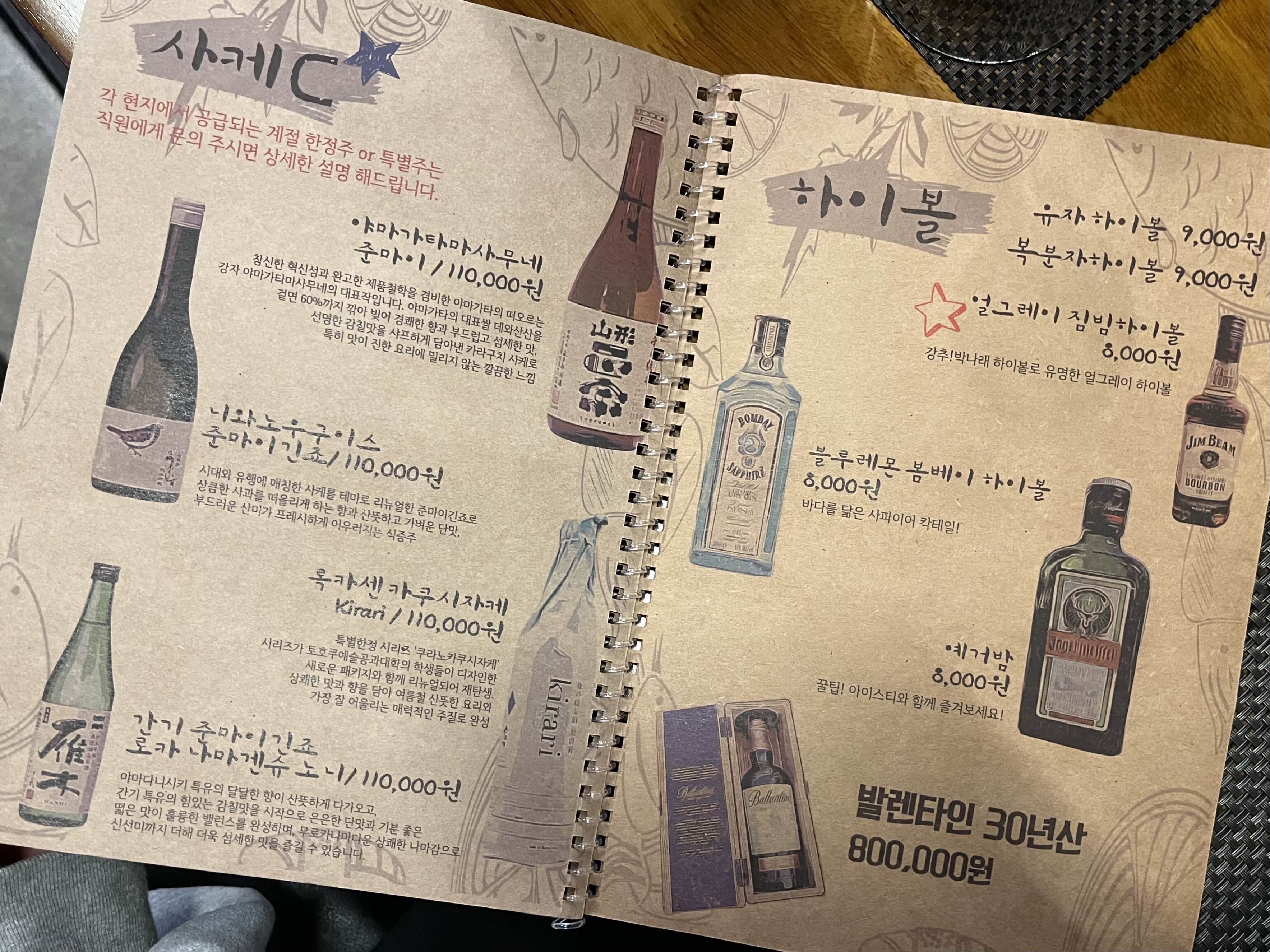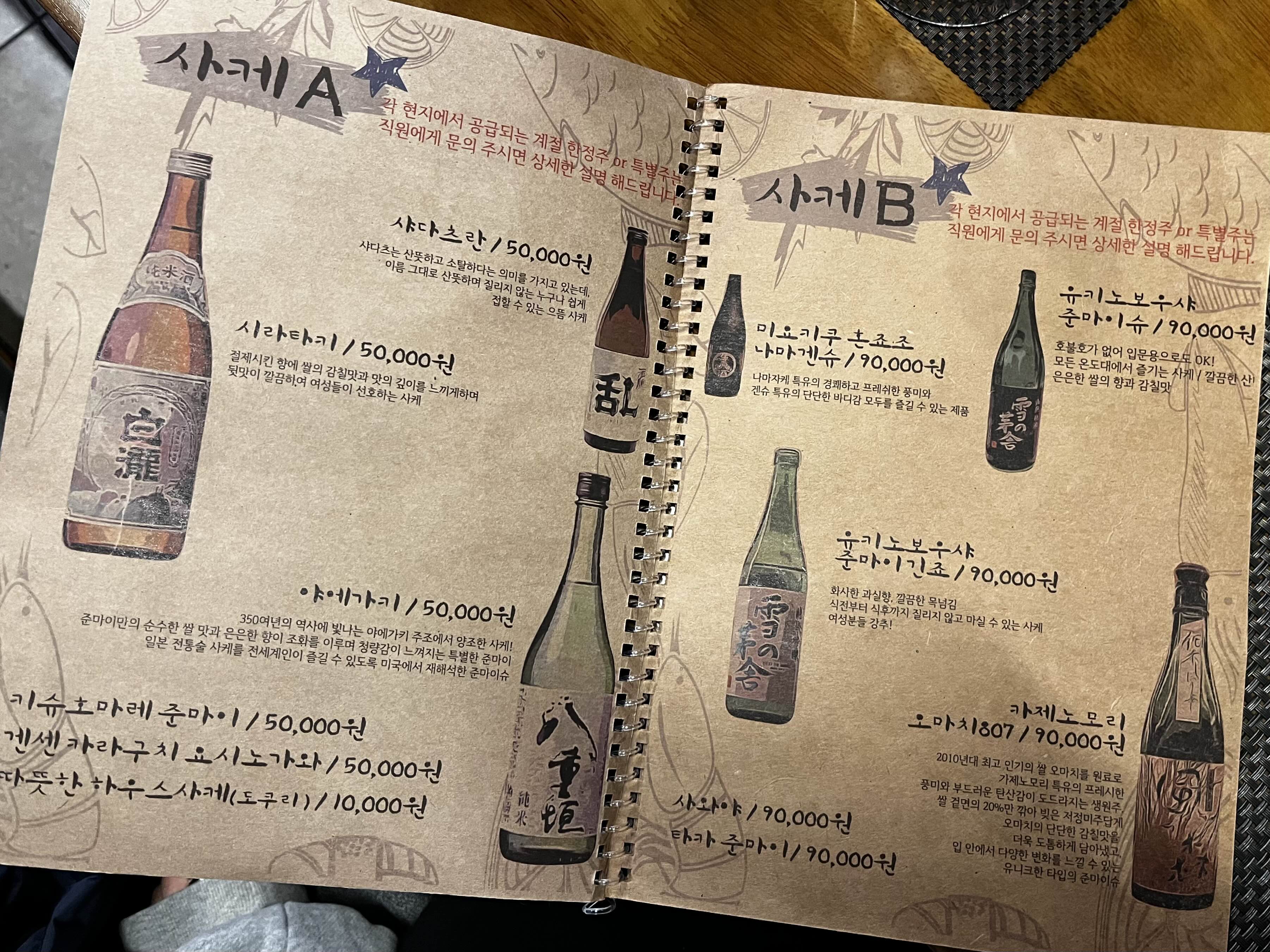 사케 메뉴는 가격대별로 나누어진 것 같았습니다💸