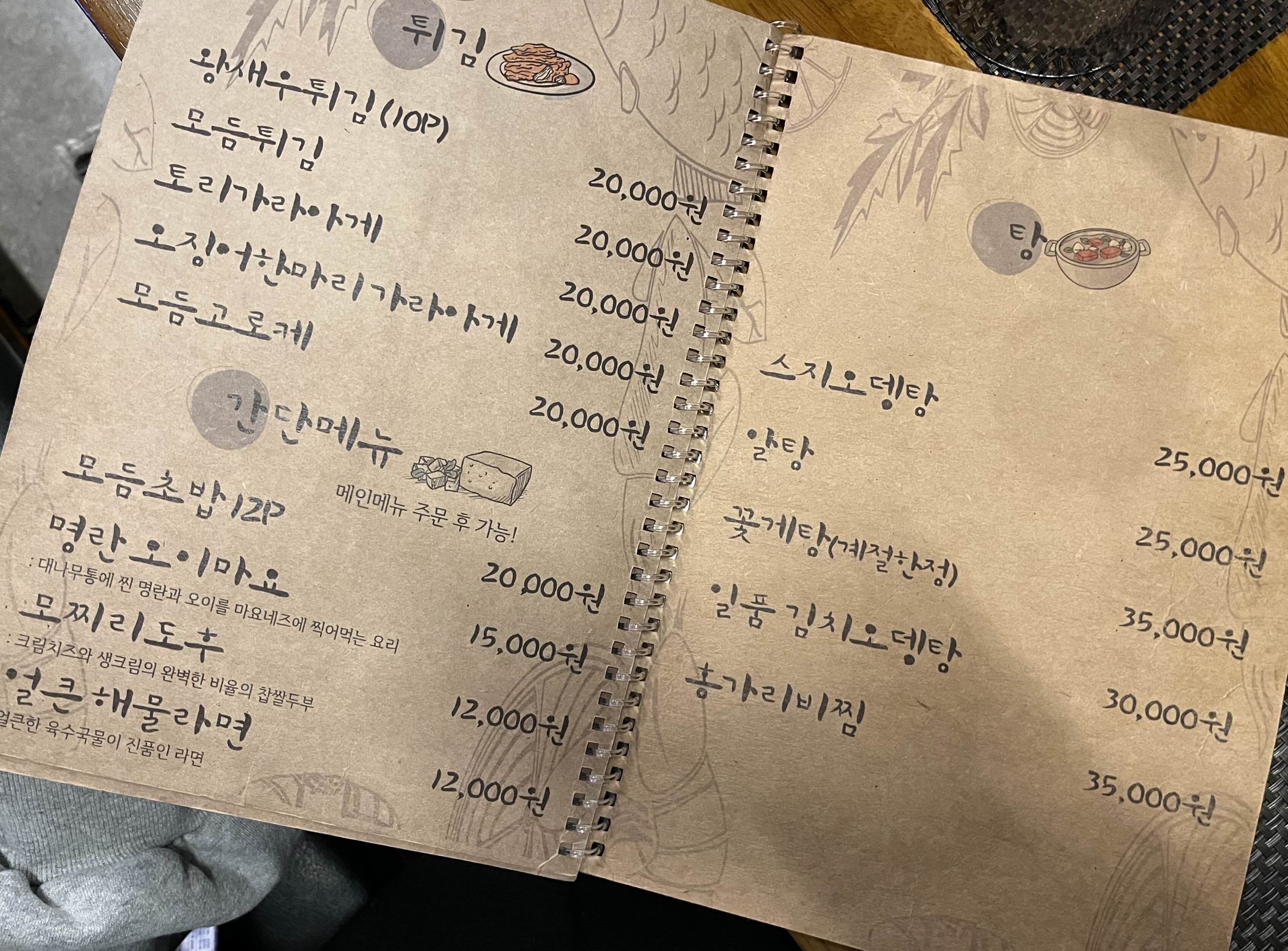 마지막으로 뜨끈한 탕 메뉴 스지 오뎅탕 / 알탕 / 홍가리비찜 등 회부터 사이드까지 다양한 메뉴 구성!🌈