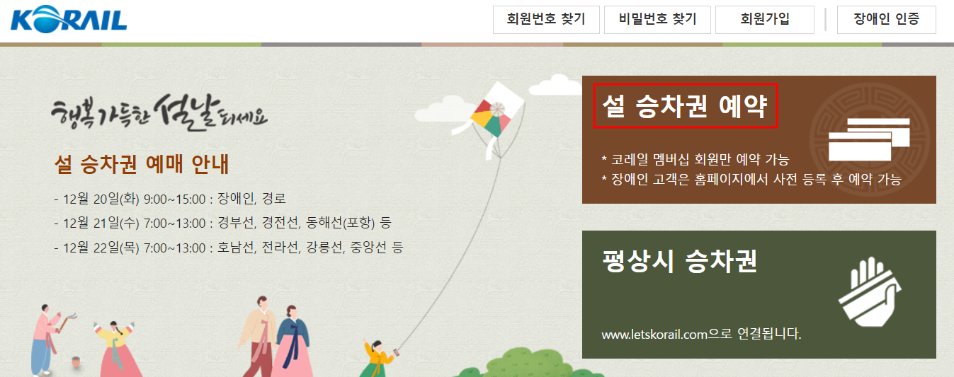 ✔명절 예매 전용 홈페이지는 코레일 멤버십(철도회원)만 이용할 수 있음