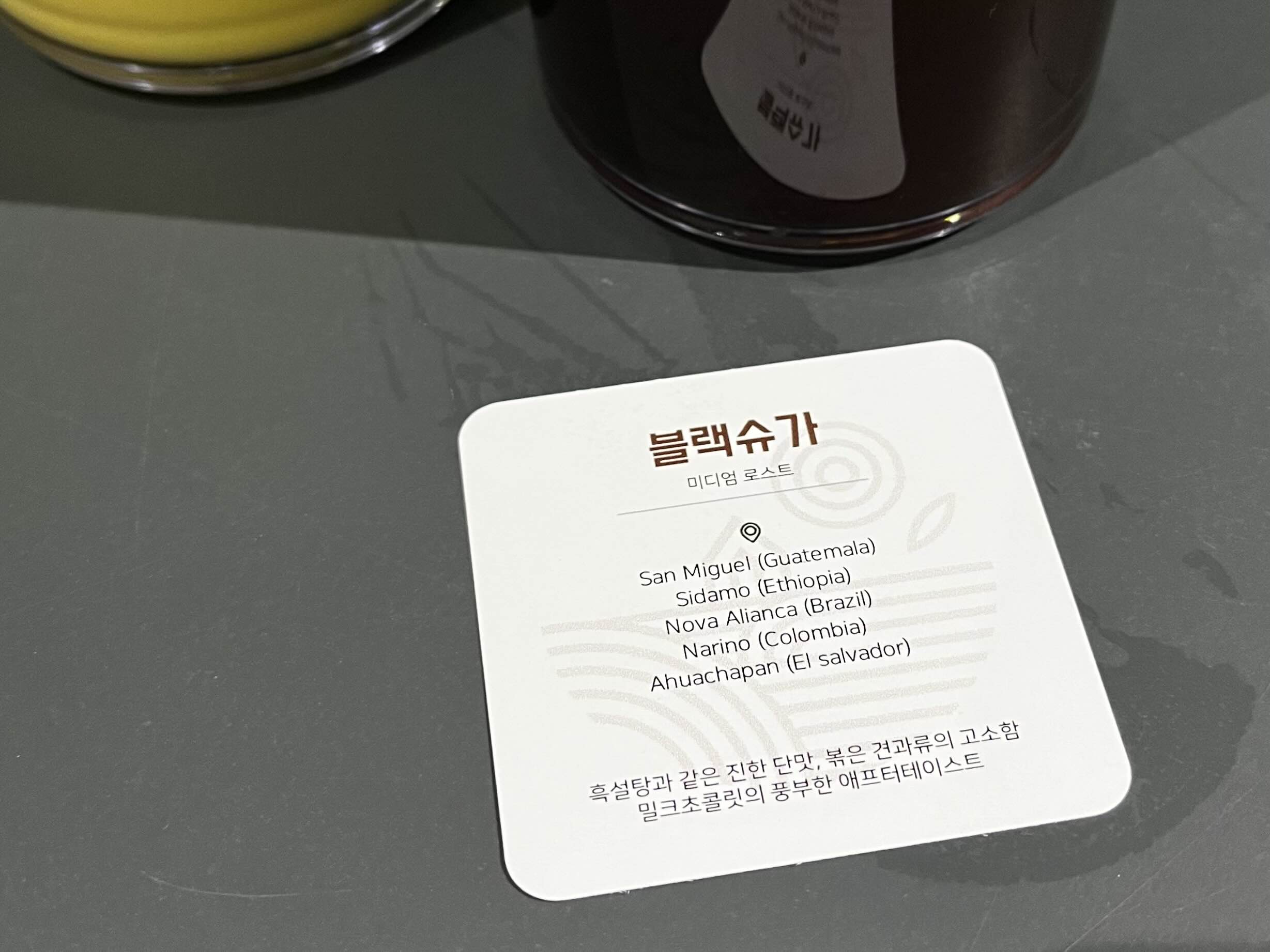 커피를 주문하게 되면 사용된 원두에 대한 설명이 적힌 종이도 함께 주십니다