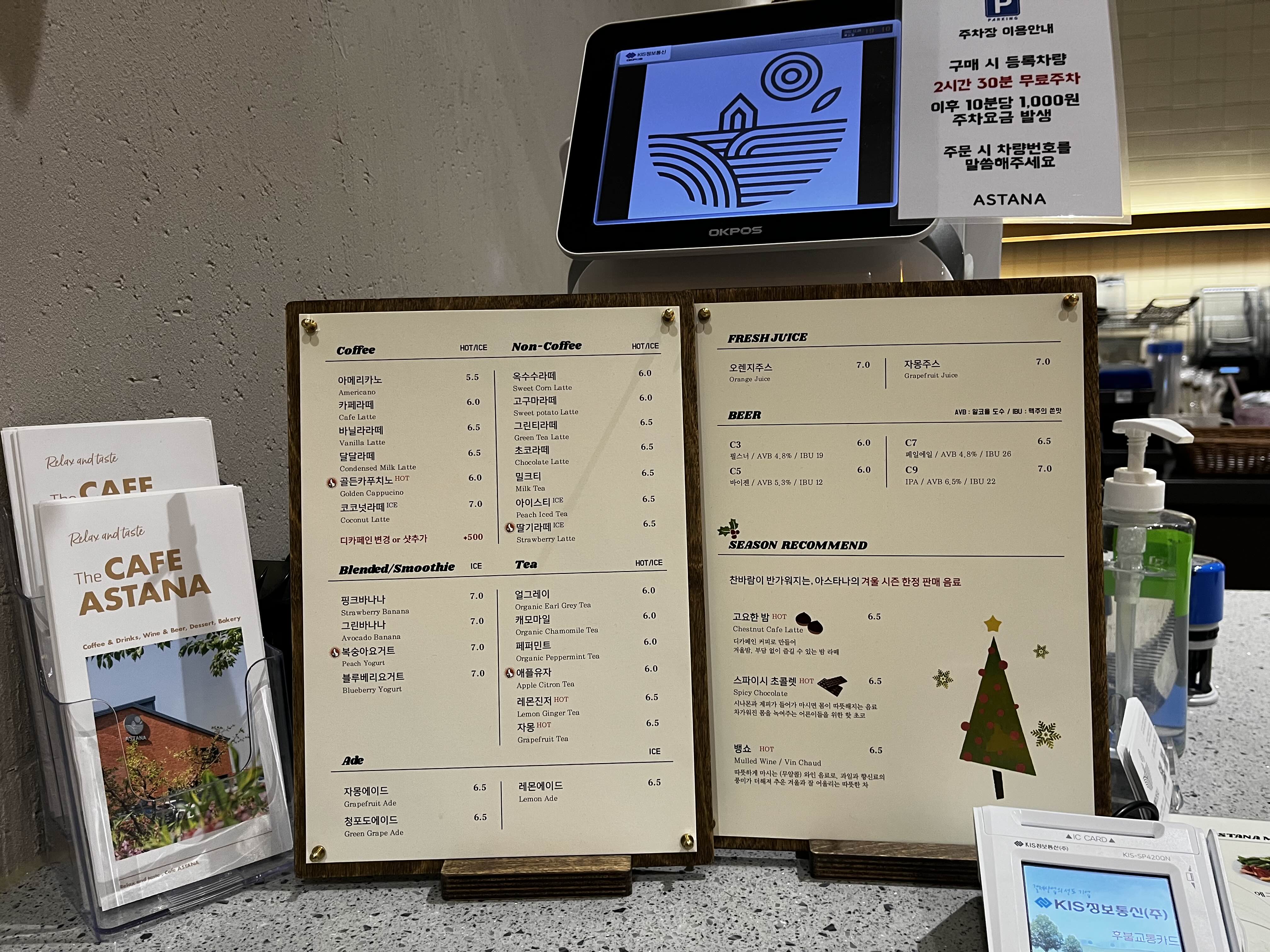카페 아스타나의 전체 음료 메뉴예요