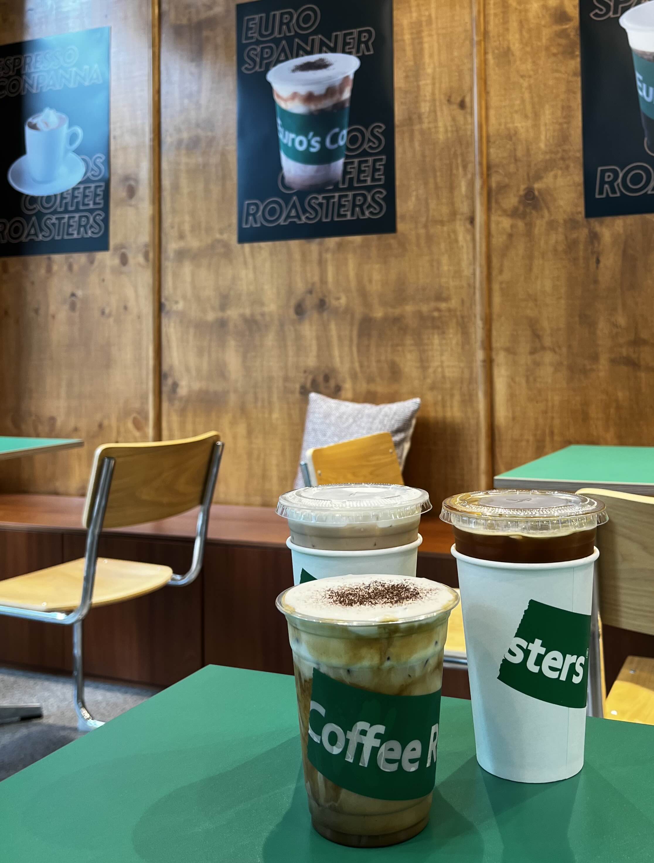 반면, 현재 유로스커피는 우드톤에 포인트로 초록색을 더한 인테리어 🤎💚