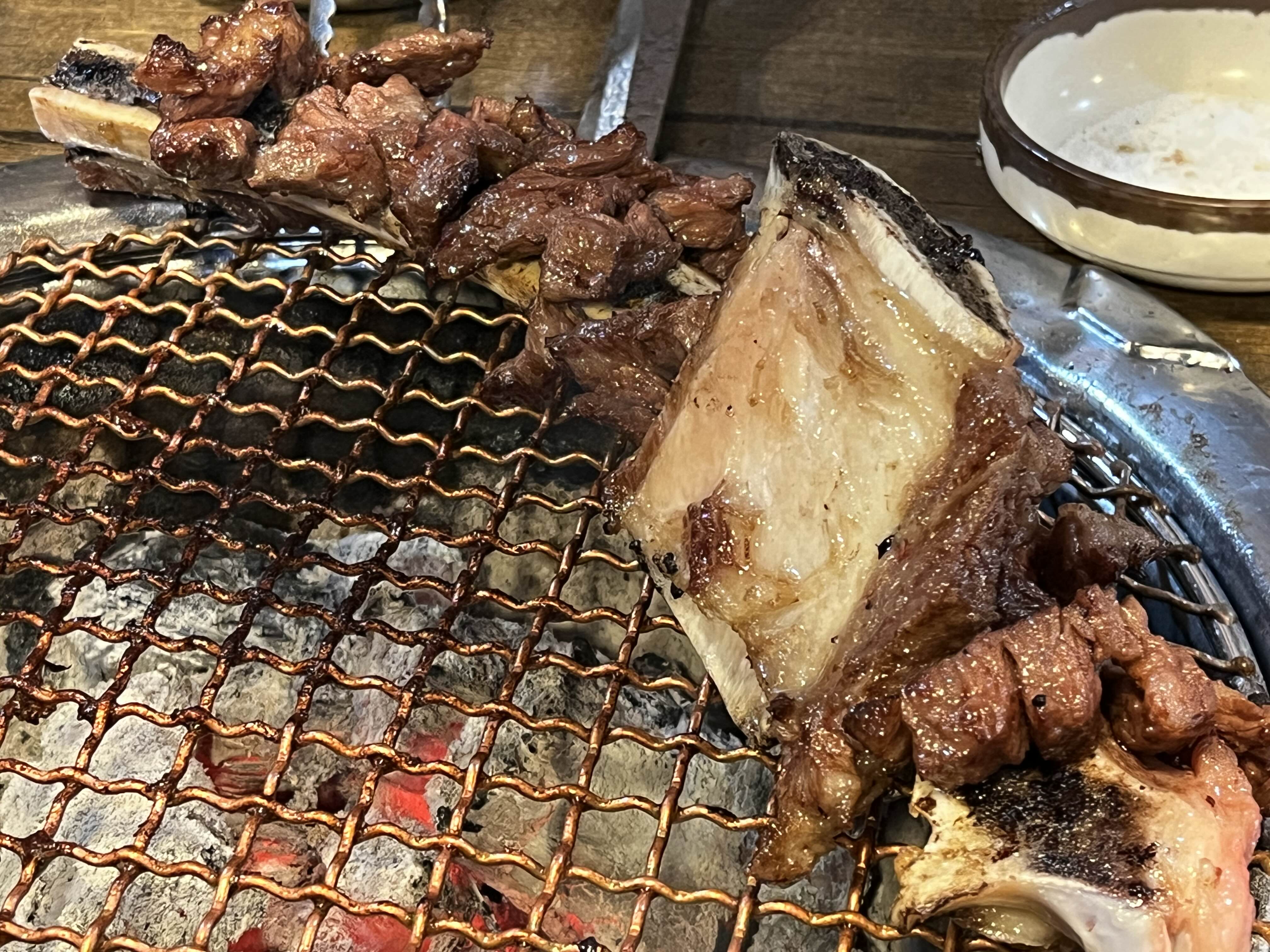 우대갈비 뼈대를 두고 그 위에 다 익은 고기들을 널어두었어요(ㅋㅋ)