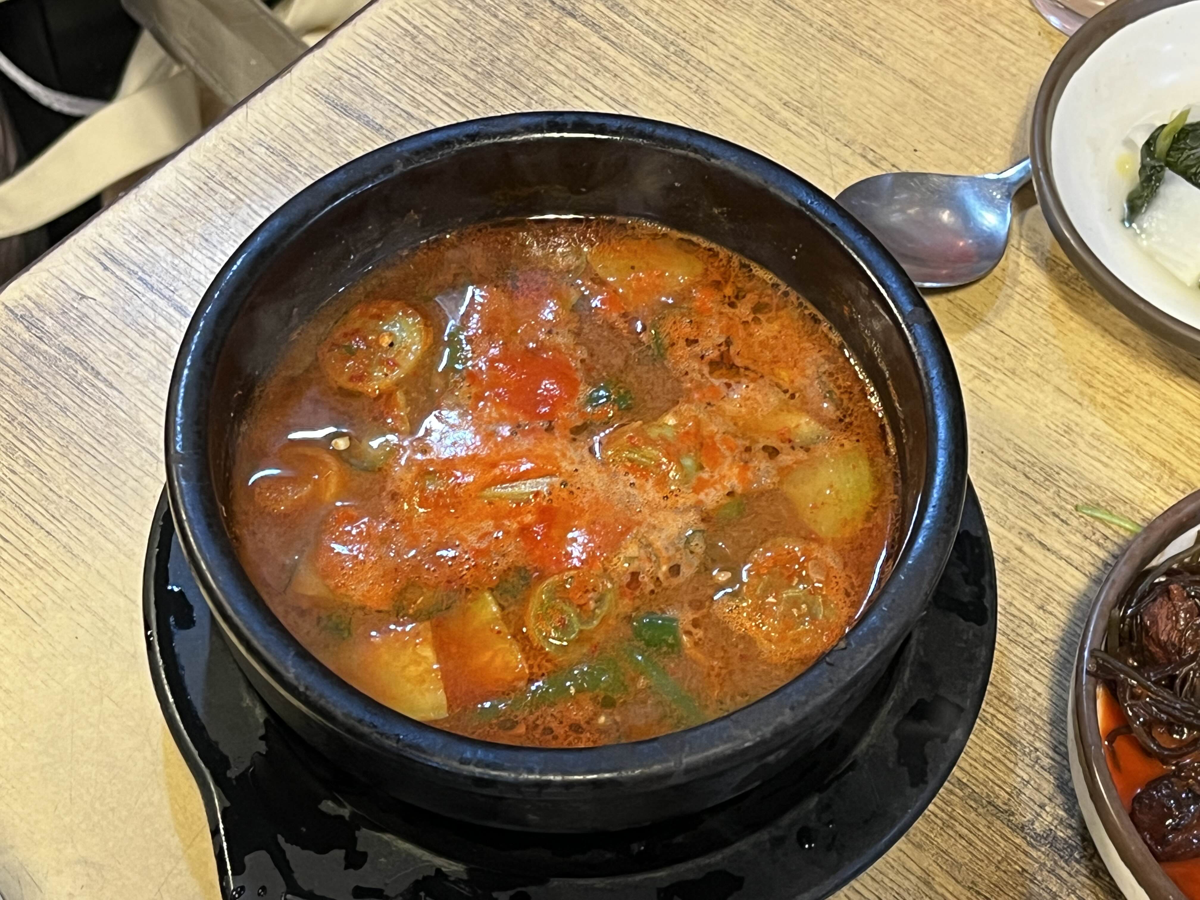 특별한 맛은 아니지만, 고기와 함께 후식으로 먹기 충분한 된장찌개예요