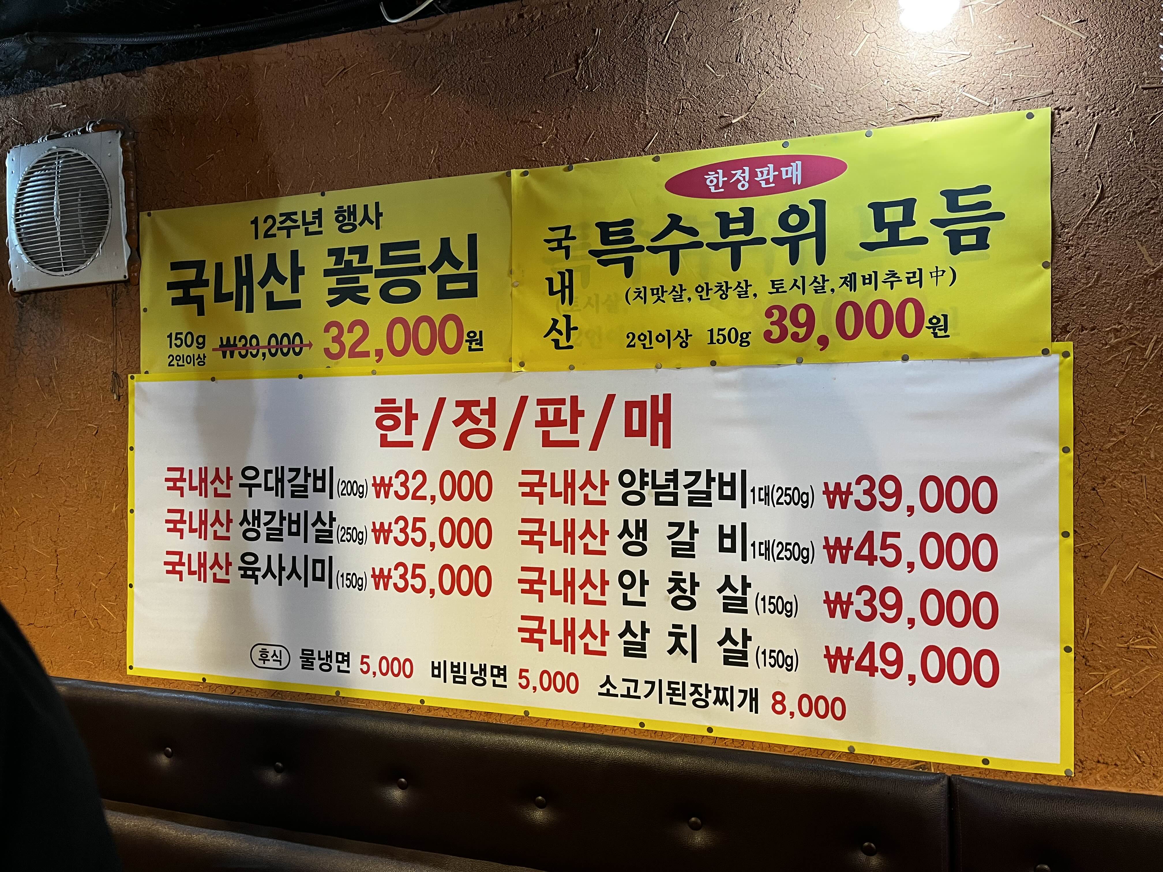 고기 메뉴의 전체적인 가격대는 비교적 저렴하게 형성되어 있는 것 같아요👍