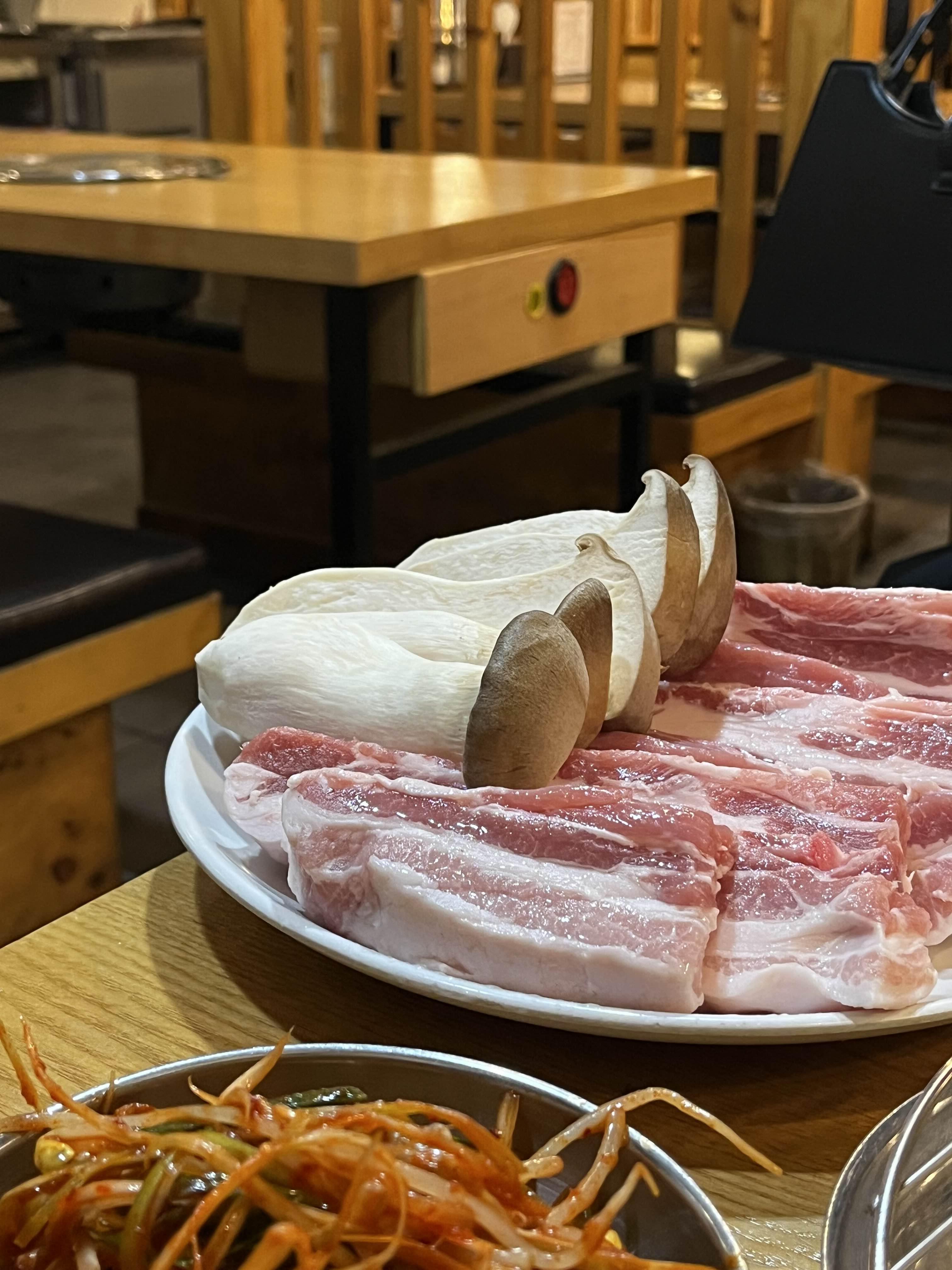 생삼겹살과 돼지갈비를 모두 주문했고, 제가 있던 테이블에서는 생삼겹살을 굽기로 했습니다🐷