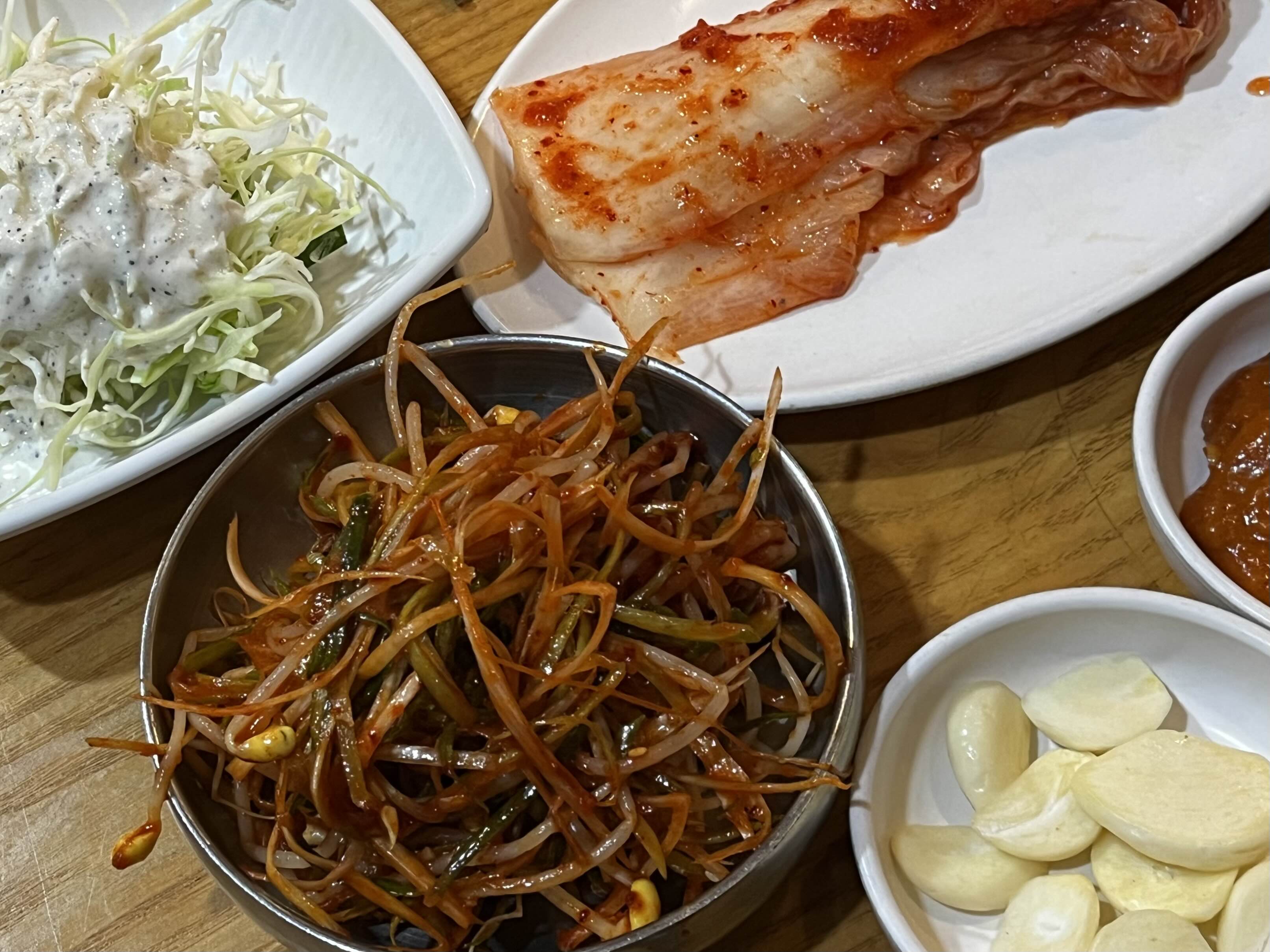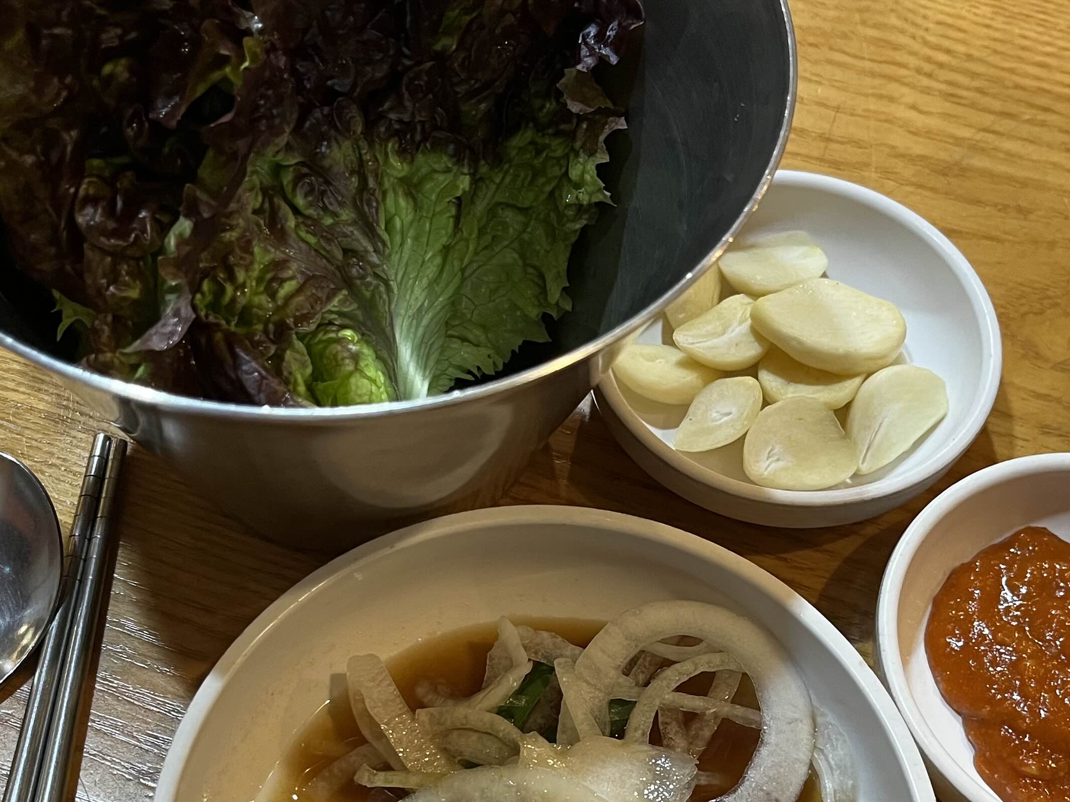 고기 메뉴를 주문한 뒤, 기본으로 준비해 주시는 상차림이에요