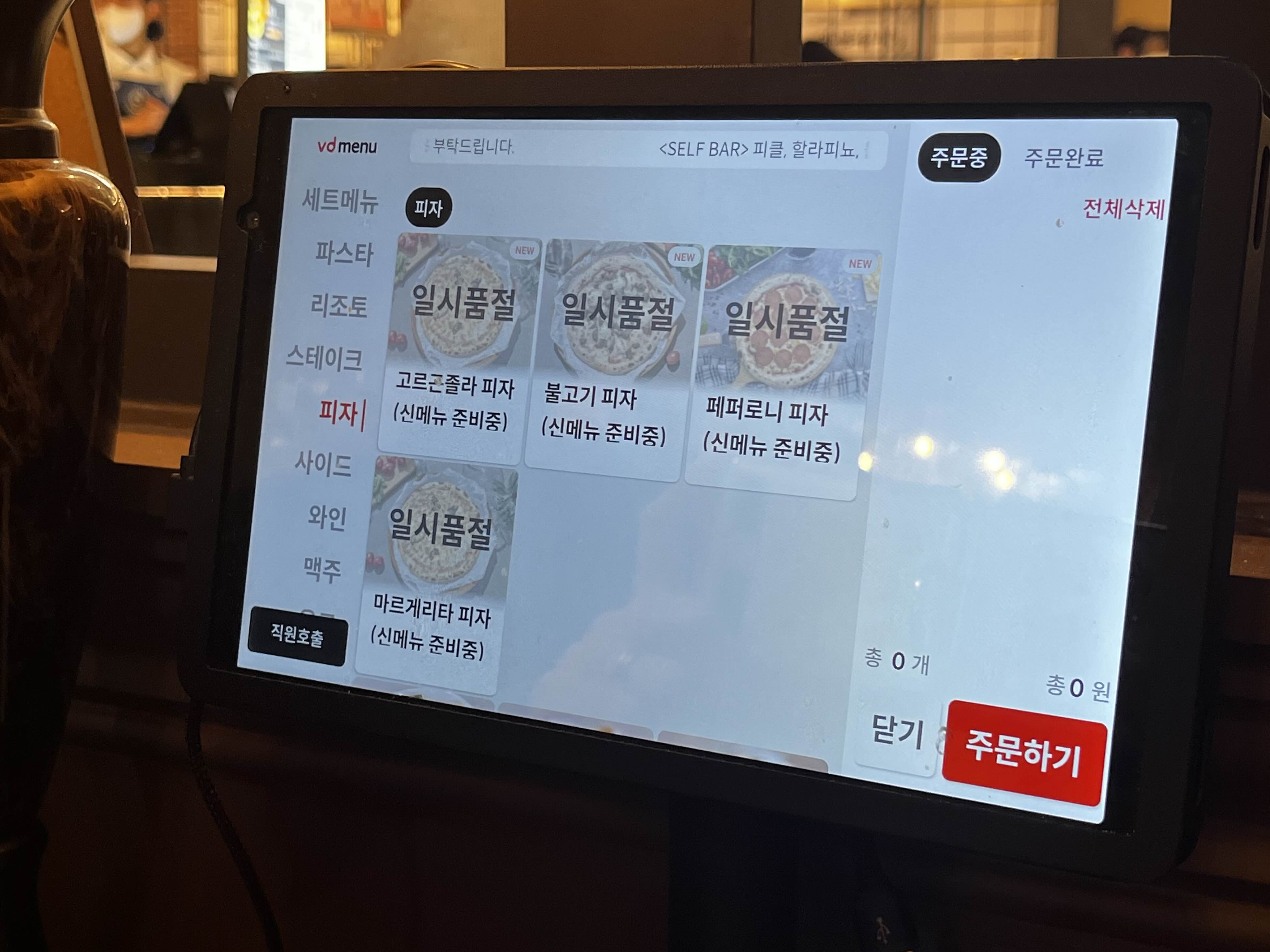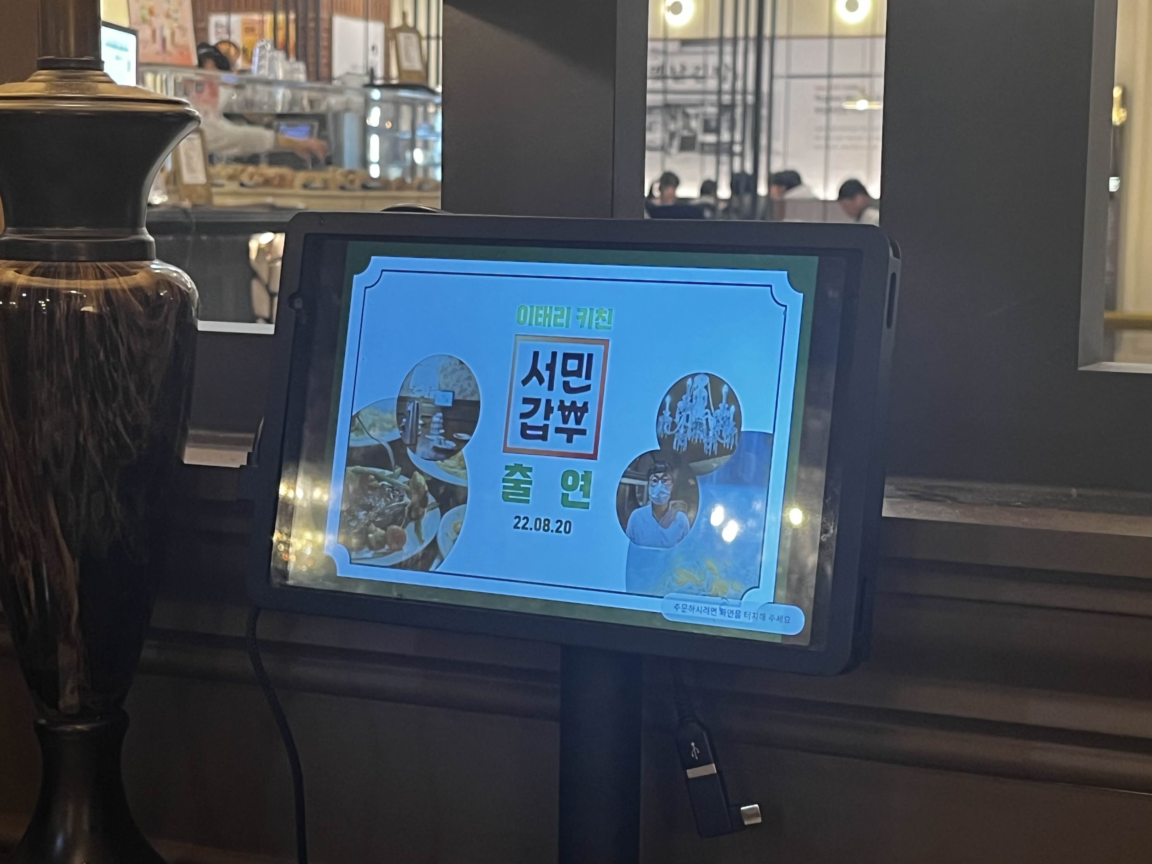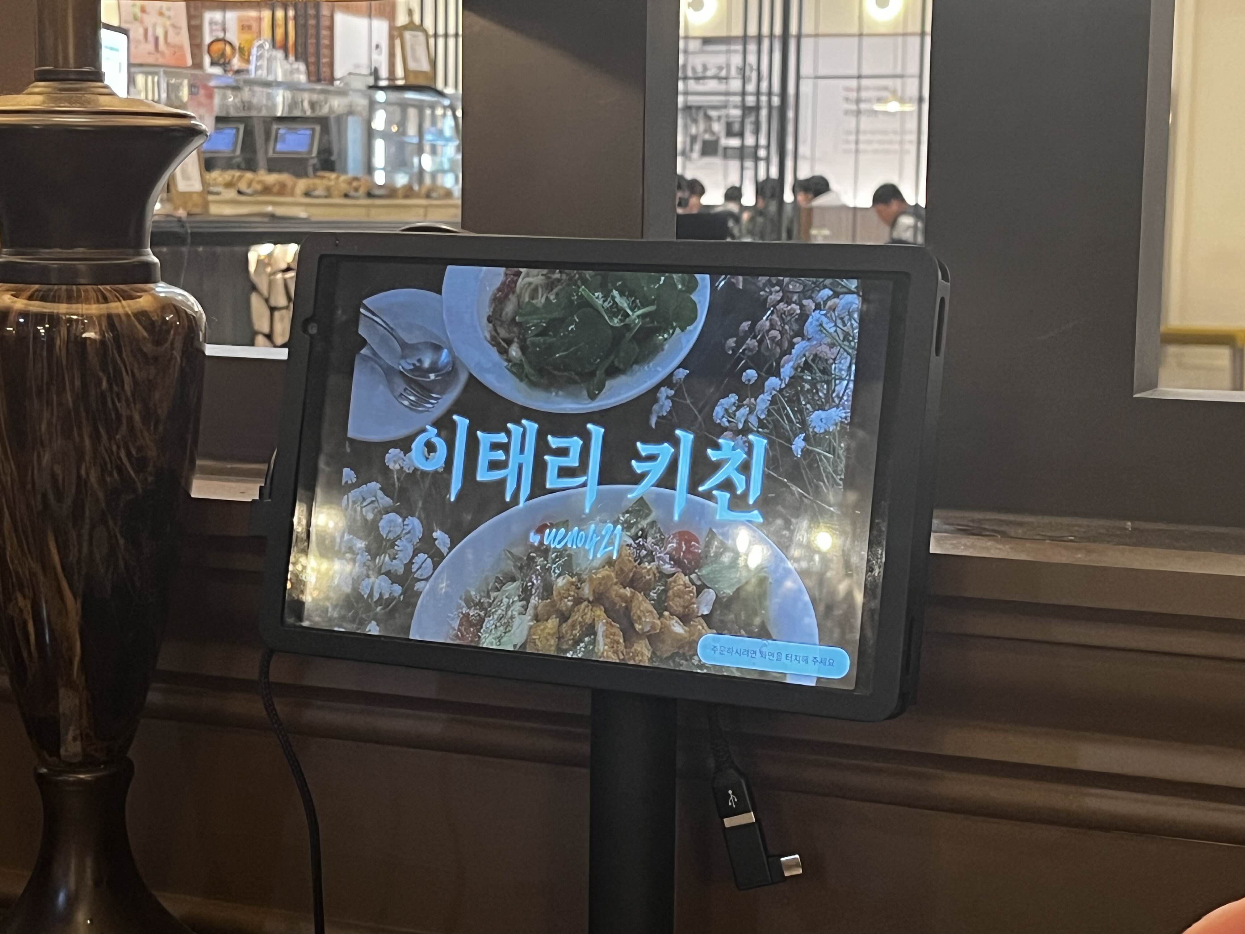 이태리 키친의 모든 주문은 각 자리에 배치된 태블릿을 통해 가능해요