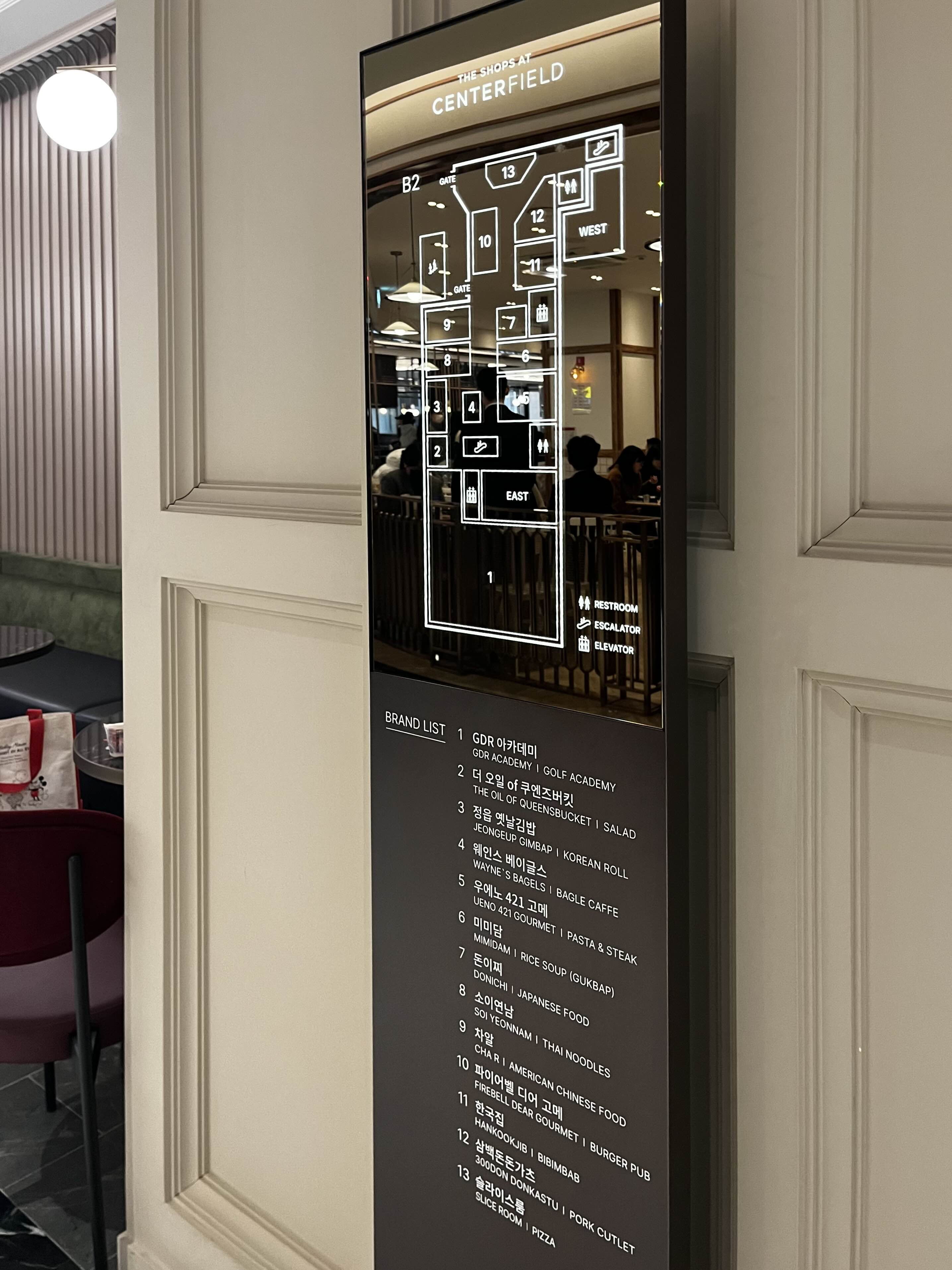 센터필드 지하에 입점해 있는 다양한 브랜드 리스트와 위치 안내입니다
