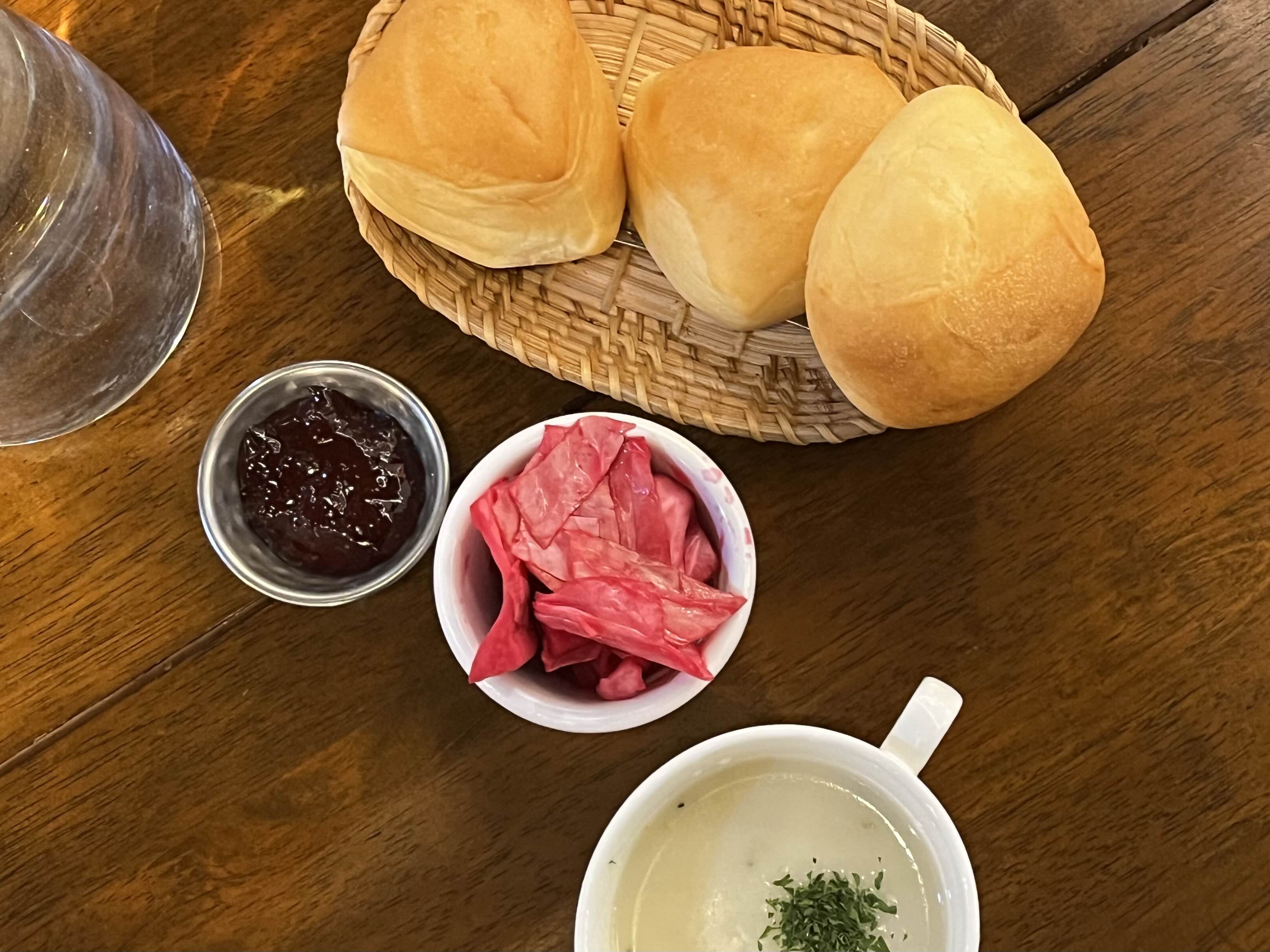 식전빵은 따땃해서 그냥 먹어도 맛있고, 크림수프에 찍어 먹어도 맛있는 맛🥖🥐🥯