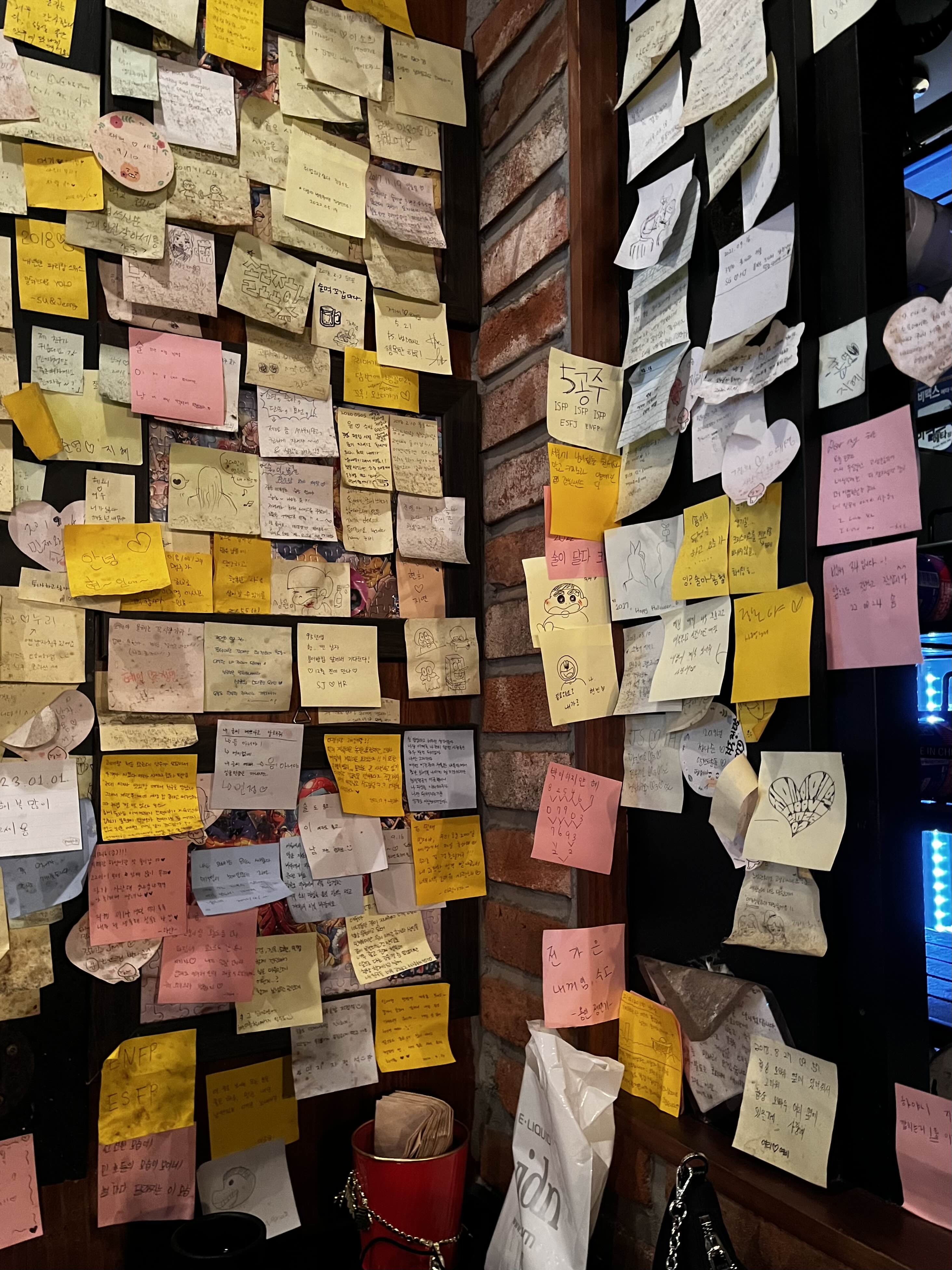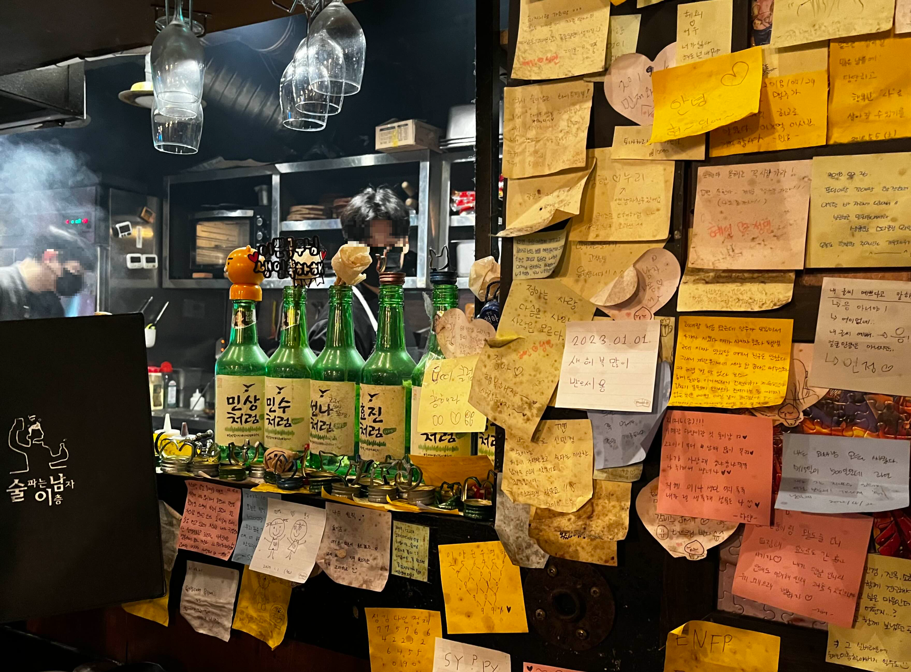 마주 보는 벽면 모두 술이남 손님들의 다양한 이야기로 빼곡히 채워진 모습!