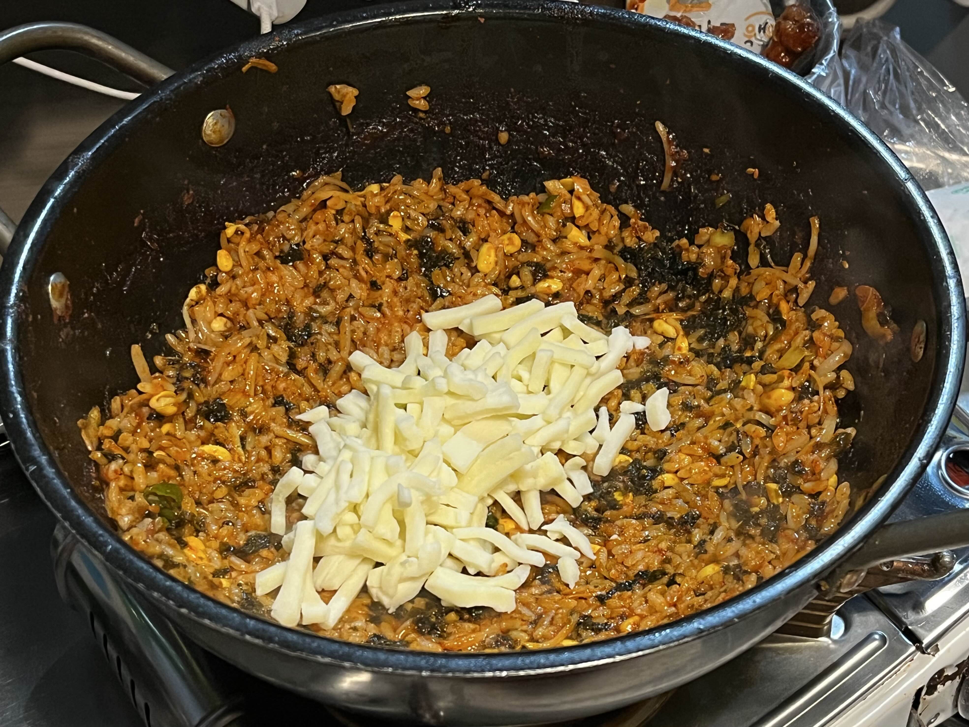 맛도리 양념 버프로 맛이 없을 수 없는 볶음밥 그 잡채 + 쭉쭉 늘어나는 치즈 = 완벽한 마무리 완성✨