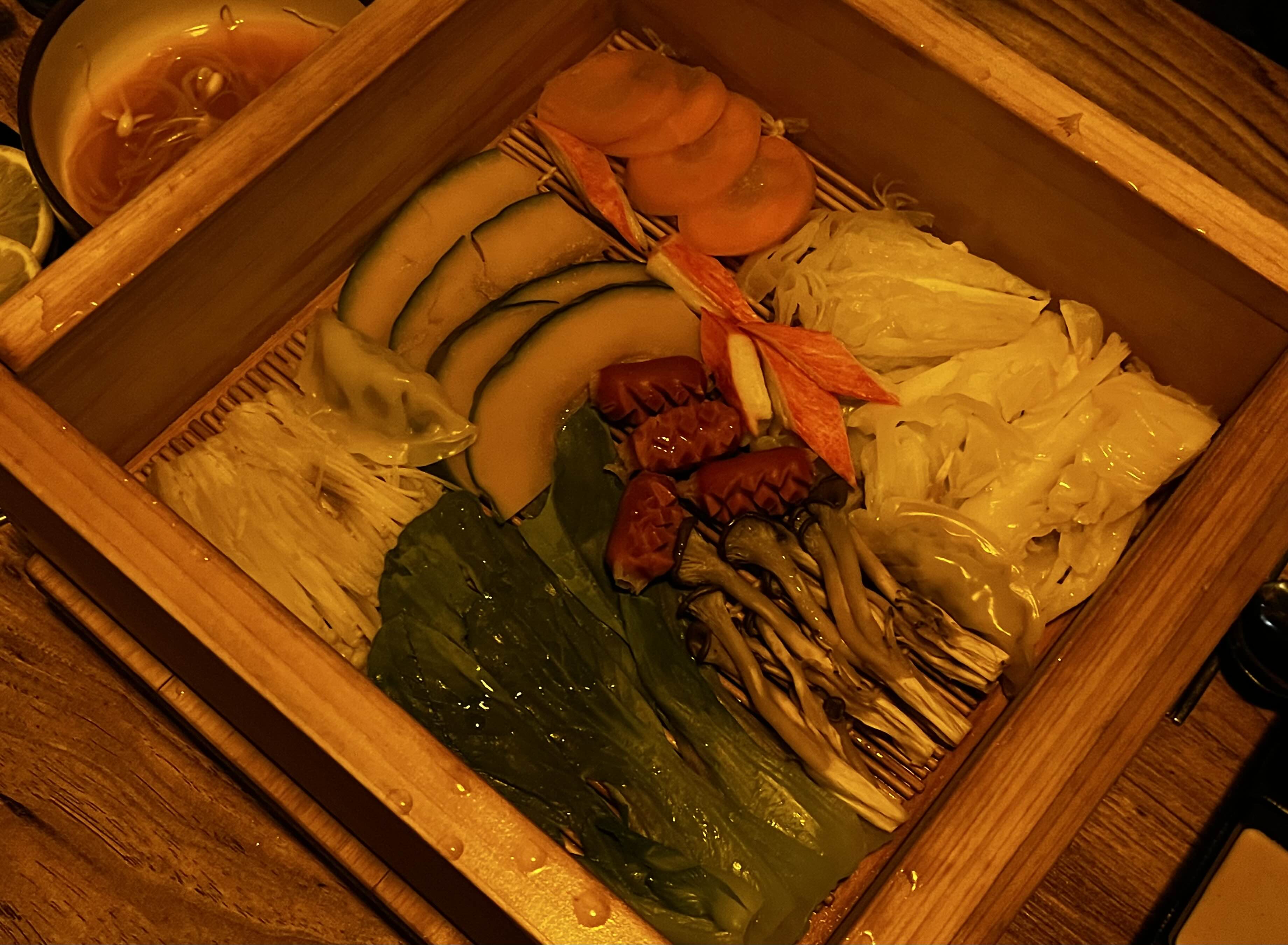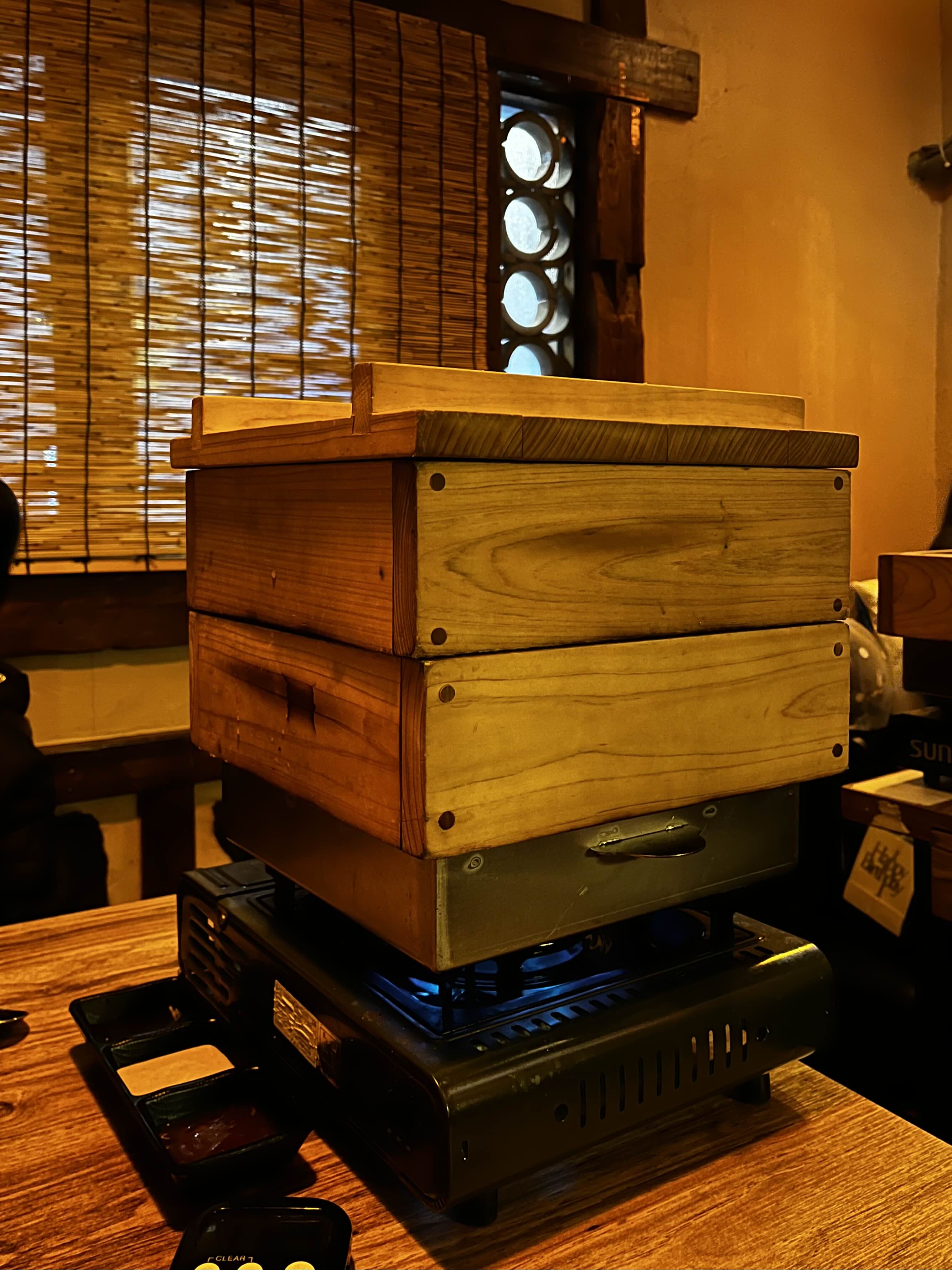 향긋한 편백나무로 만들어진 2단 찜기에 소고기와 다양한 야채를 즐길 수 있는 요리🌿🍃