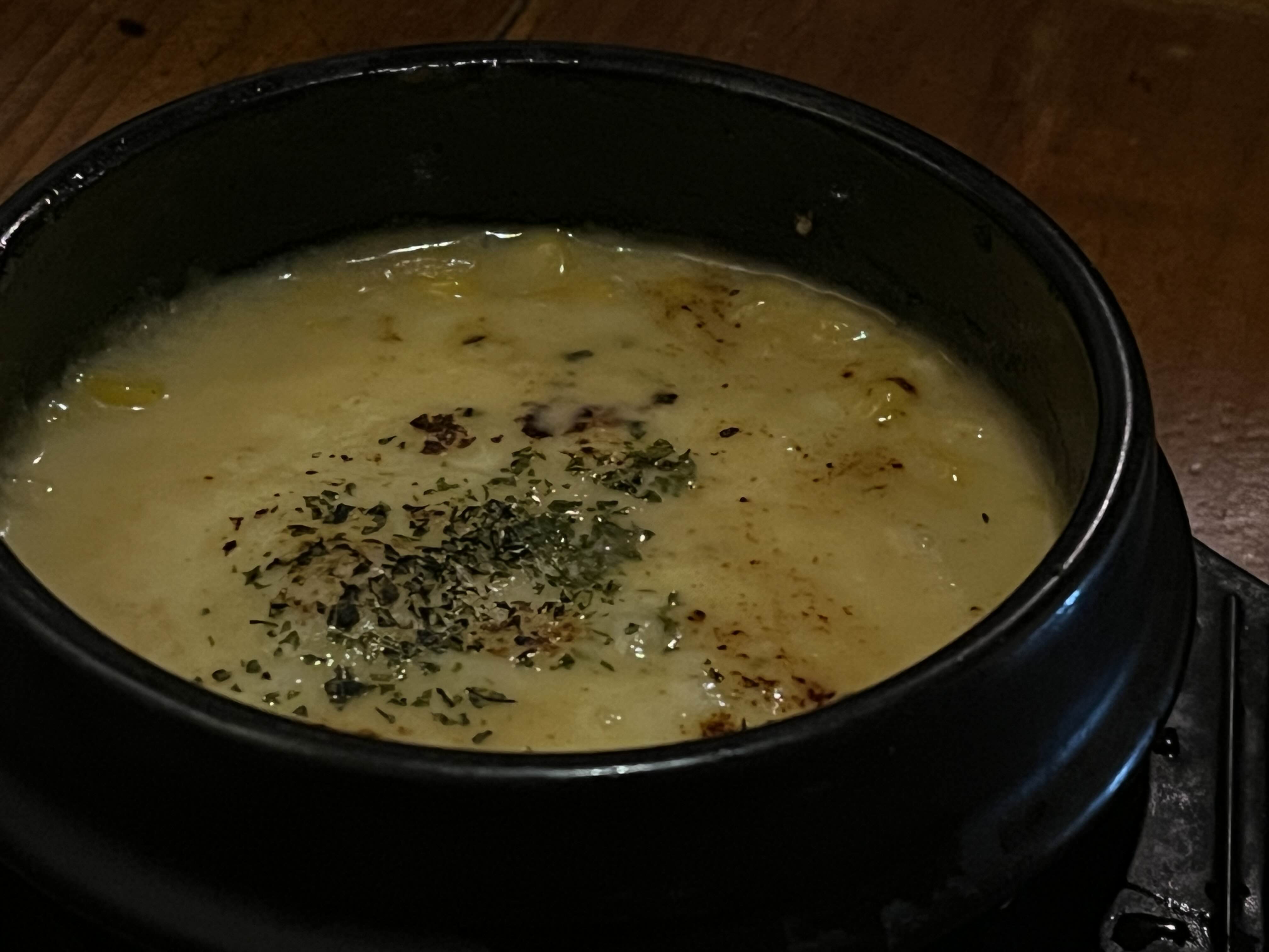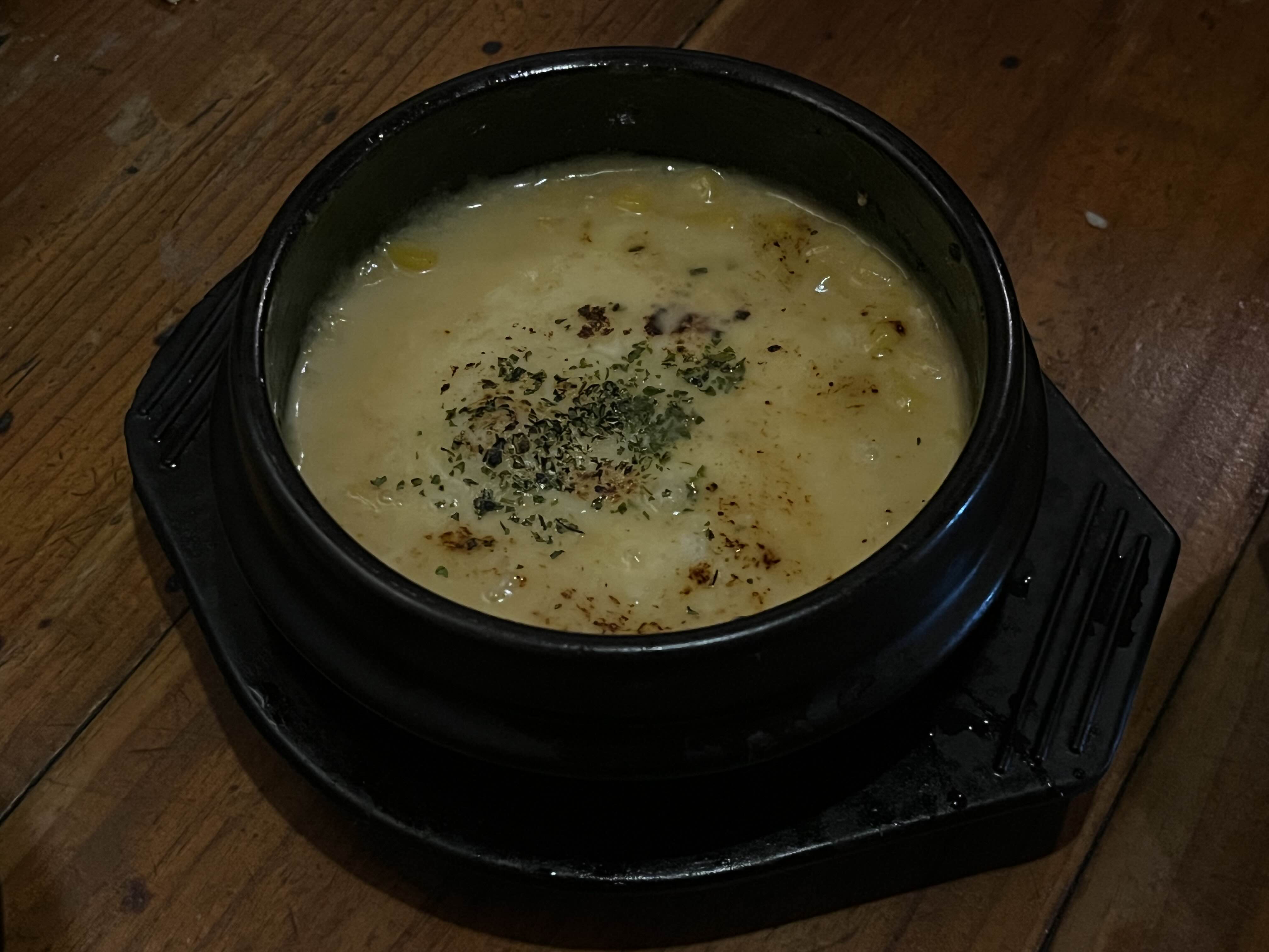 뚝배기에 나오기 때문에 치즈도 바로 굳지 않고, 한동안 따뜻하게 먹을 수 있어 좋았습니다🌽🧀