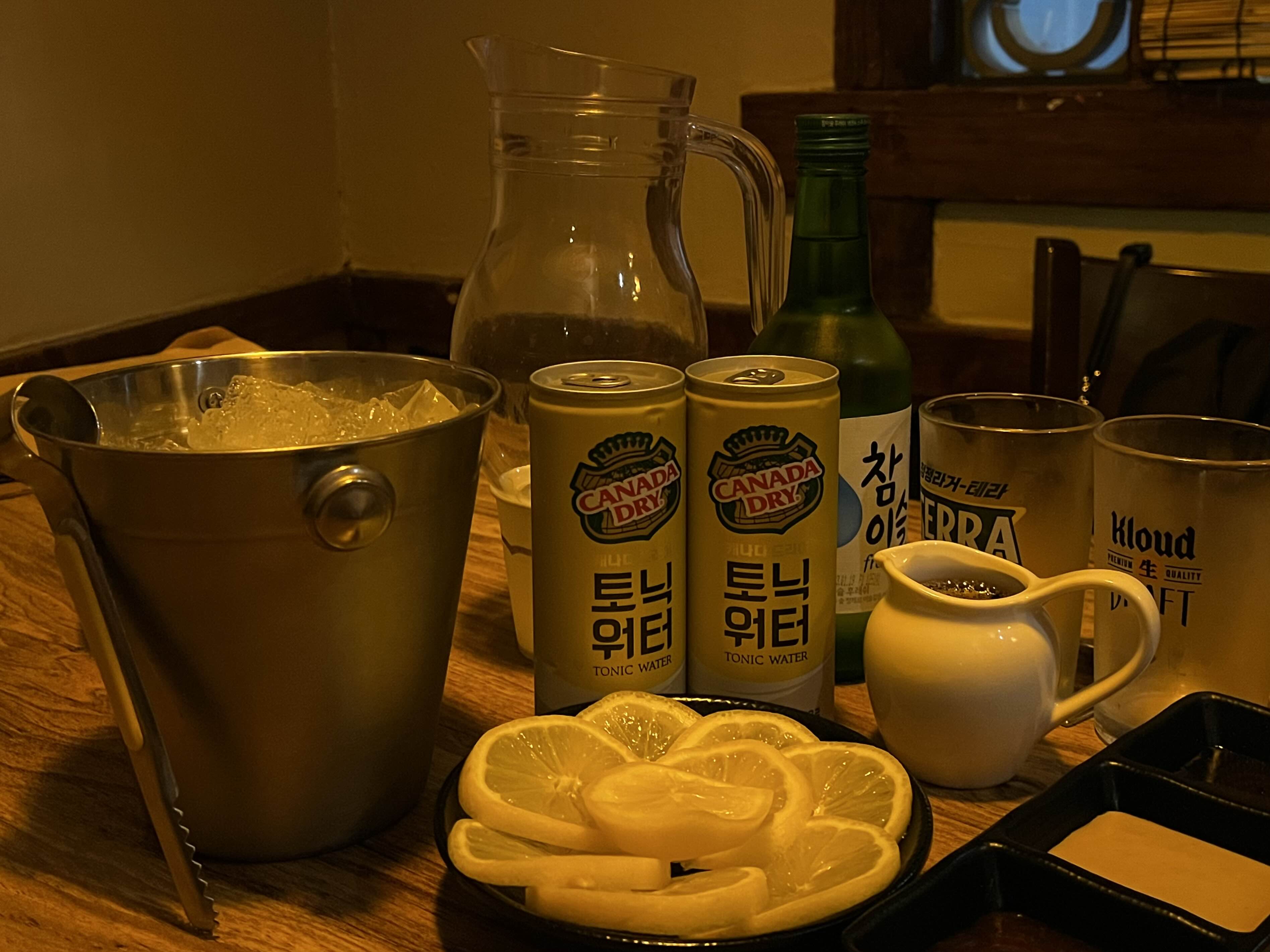 저 같은 경우에는 별도 원액 추가 없이 얼그레이 세트 + 소주 2병이 딱 적당했습니다