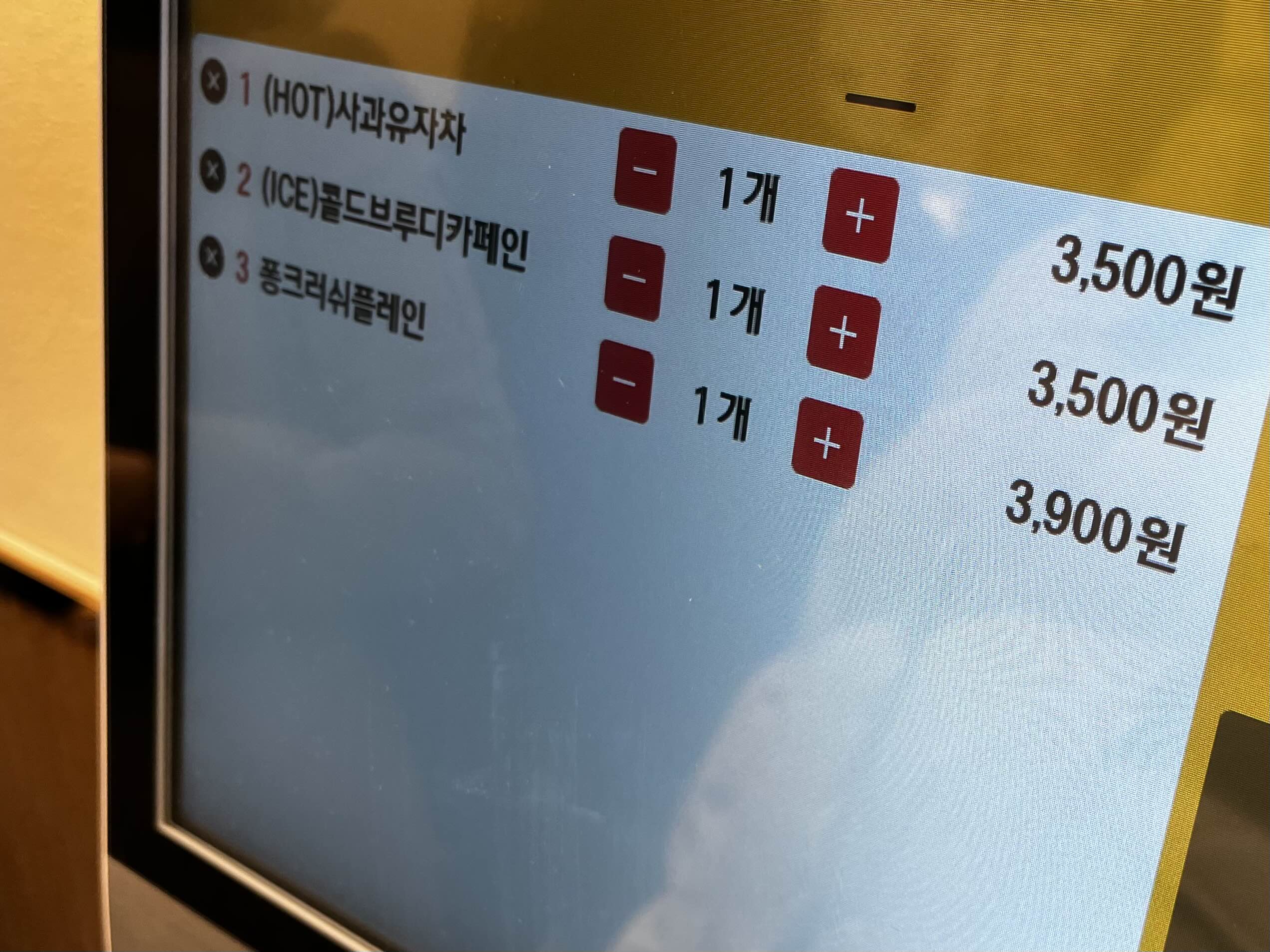 역삼대로점 메가커피는 외부와 내부 각각 1대씩 비치된 키오스크로 주문 가능!
