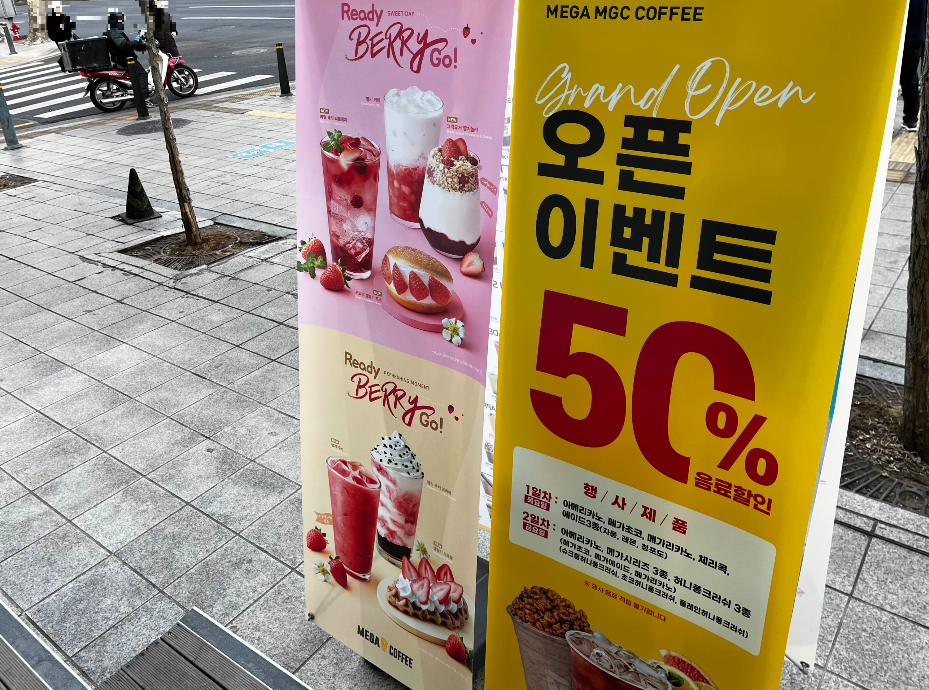 제가 방문했던 날은 오픈 기념으로 행사 제품에 해당하는 음료 50% 할인 이벤트가 있었어요(*현재는 이용 불가)