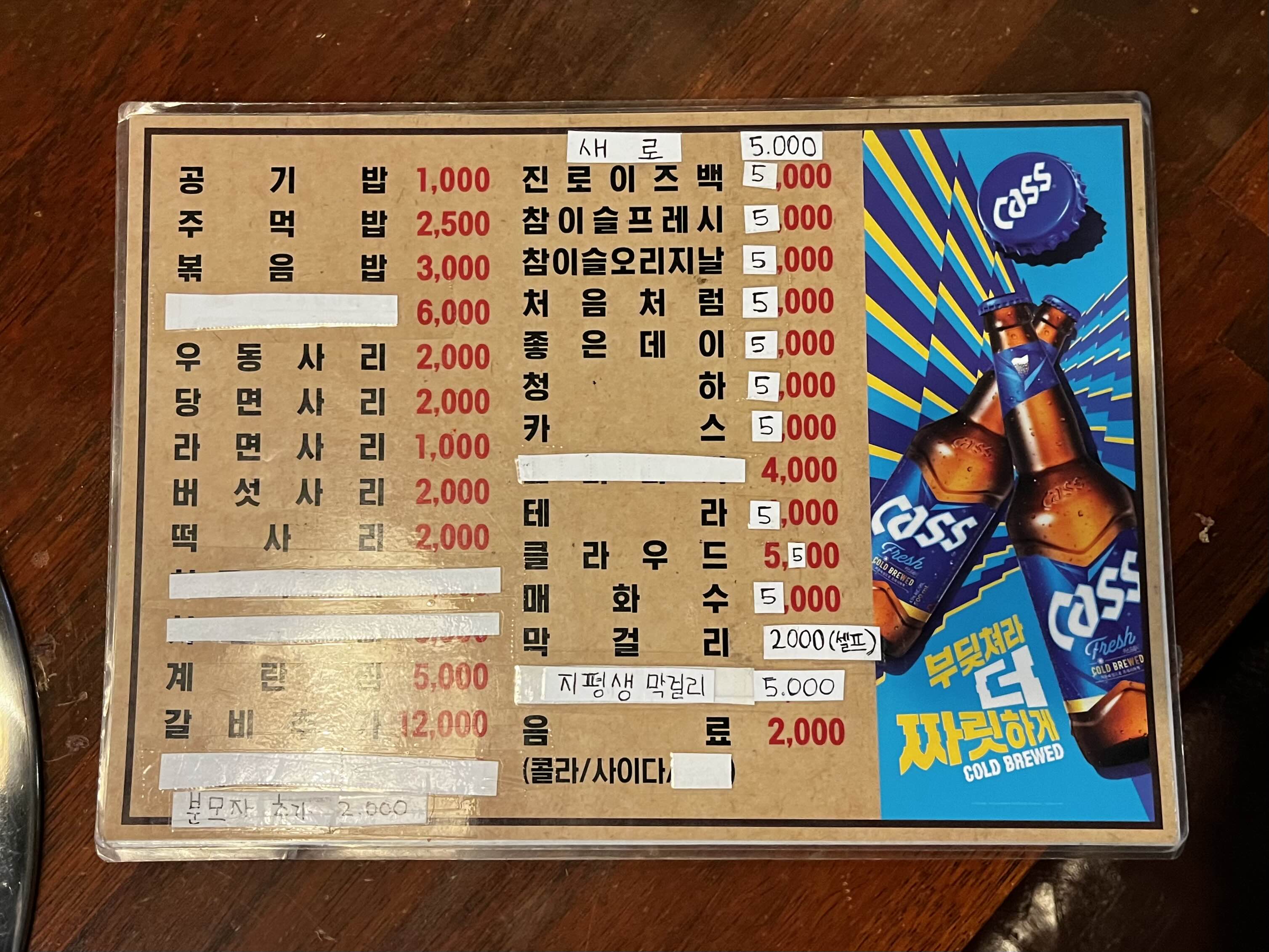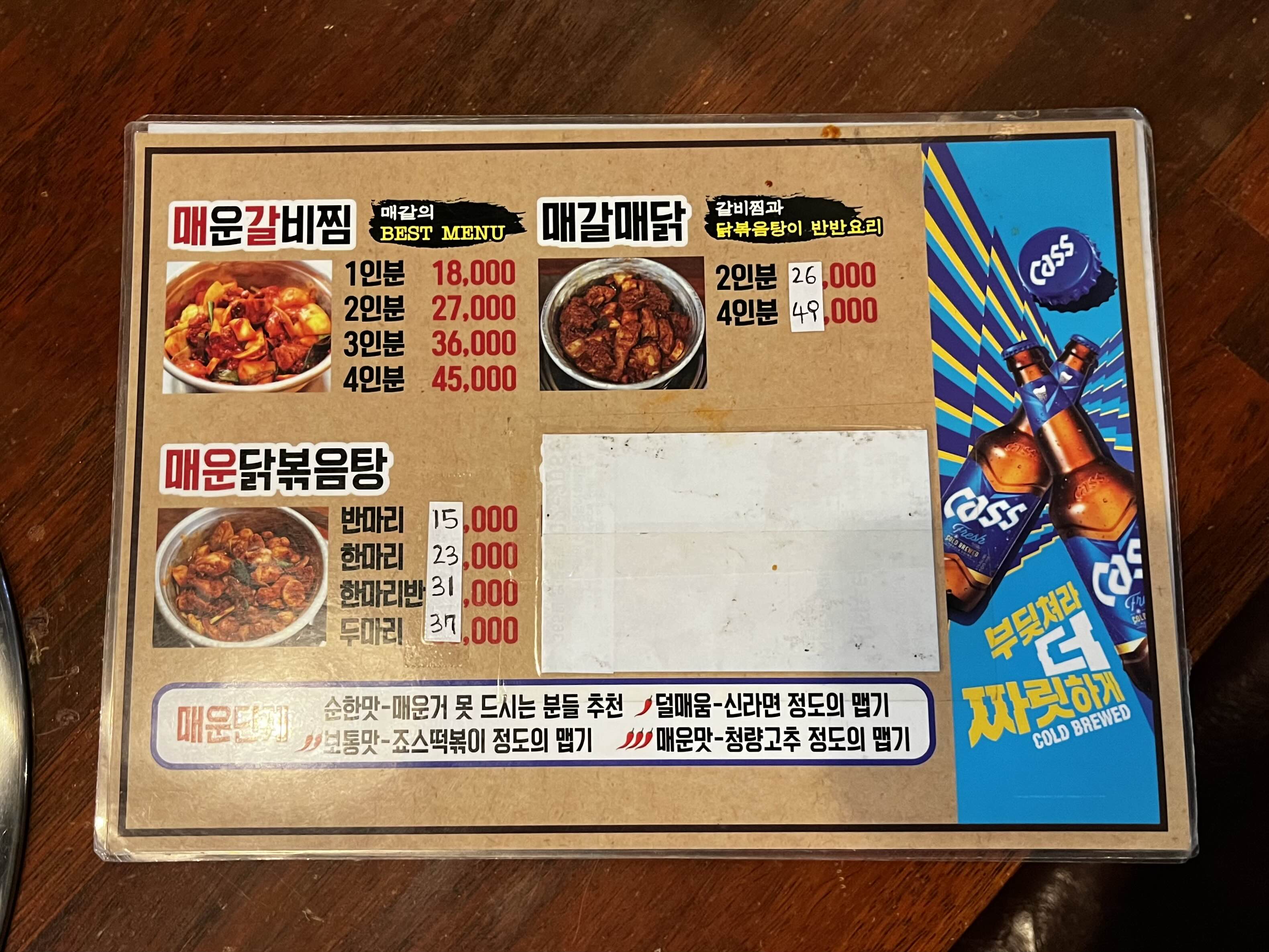 각 테이블마다 비치되어 있는 매갈의 전체 메뉴판이에요