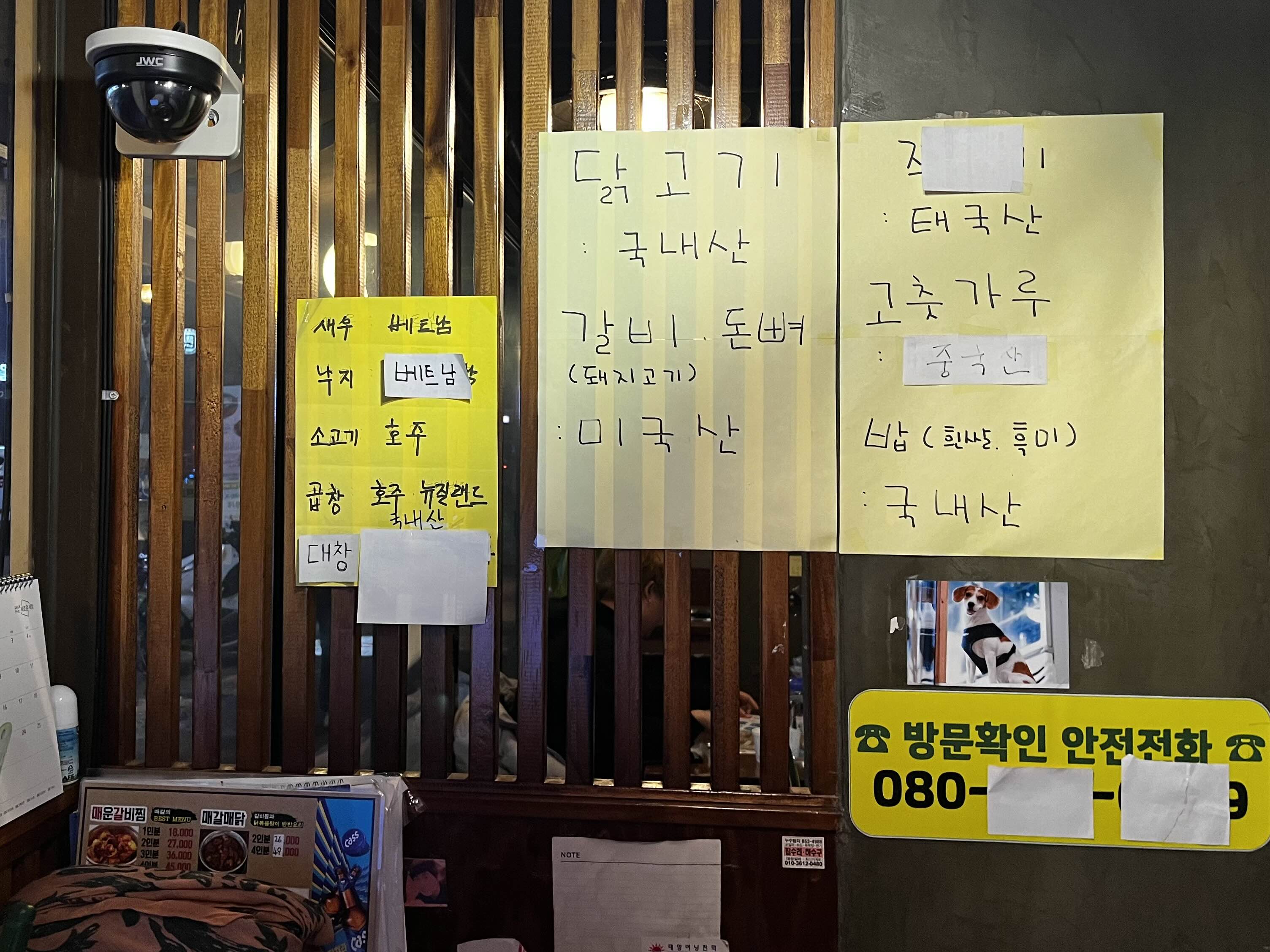 입구로 들어가시면 카운터 쪽에 재료에 대한 원산지 표기가 되어 있습니다🧐