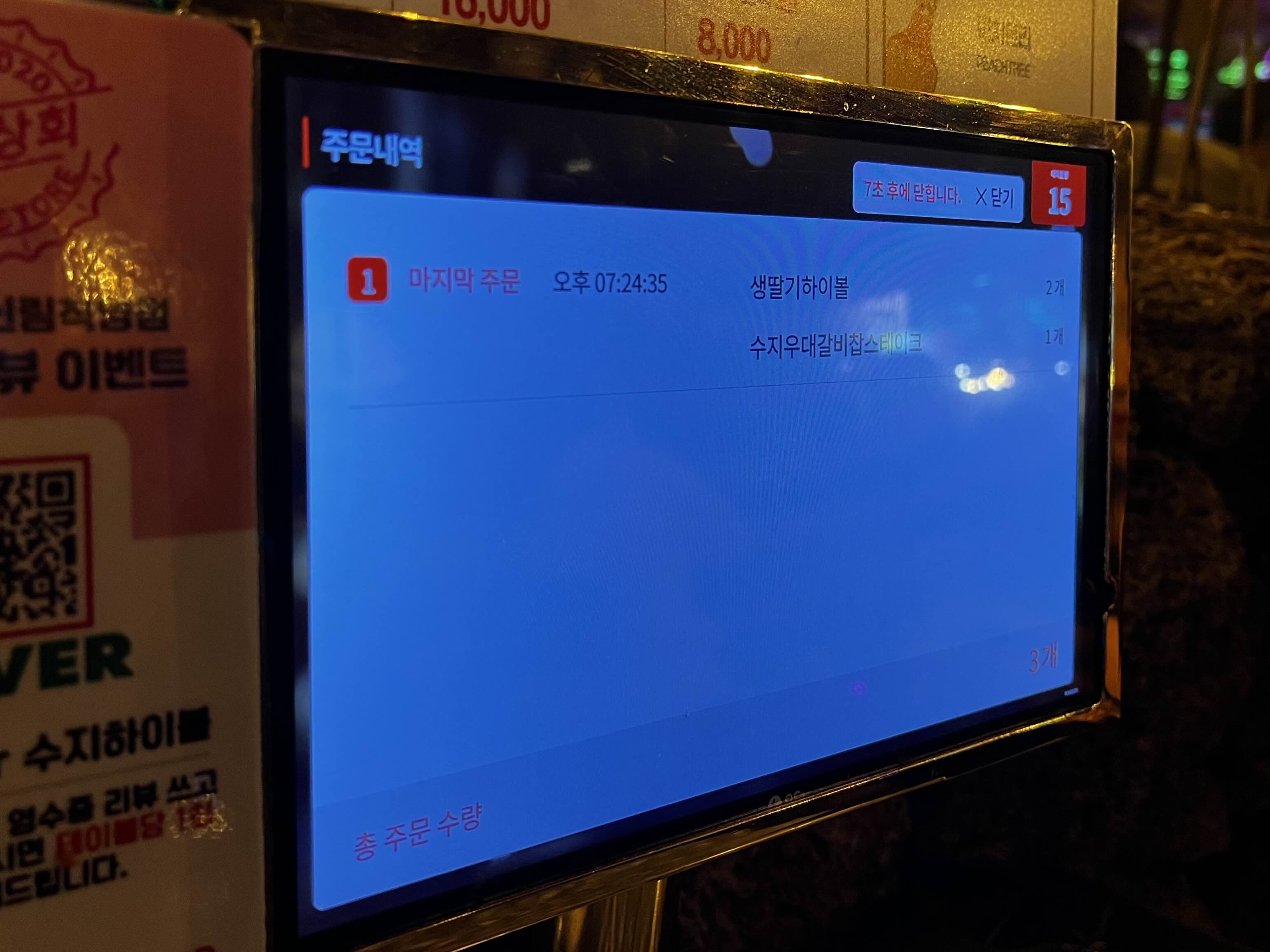수지상회는 각 테이블에 있는 태블릿으로 주문이 가능해요