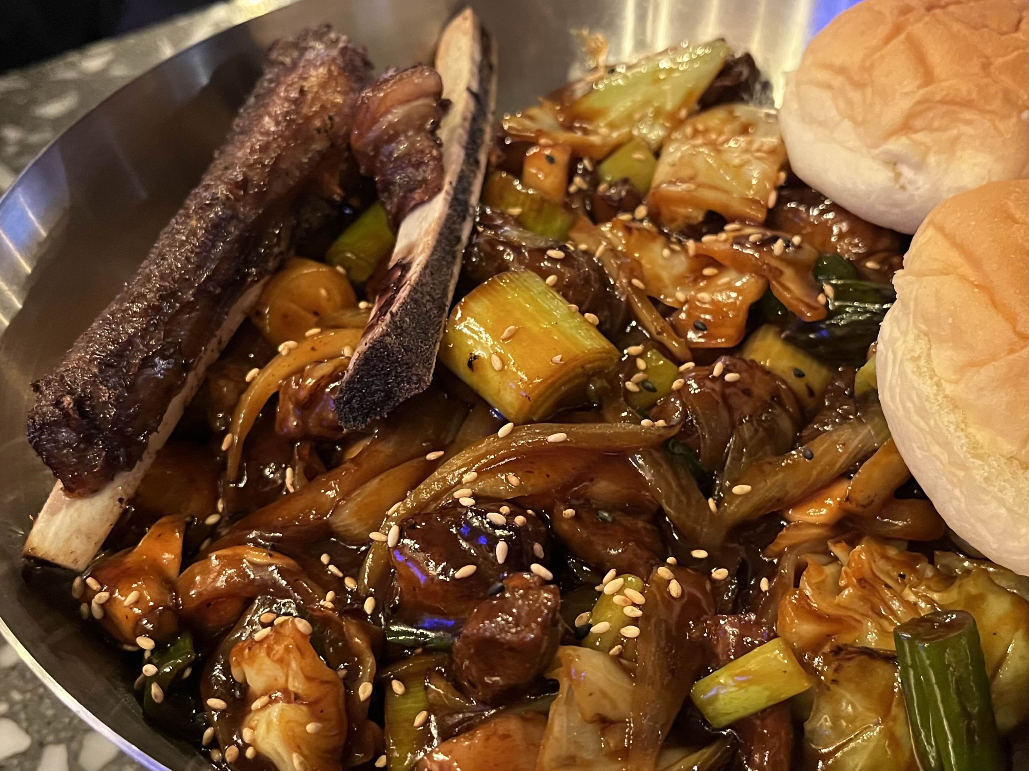 같이 나온 부들부들 따뜻한 모닝빵은 고기, 짜파게티(?) 소스까지 올려서 꼭 같이 드세요🤤