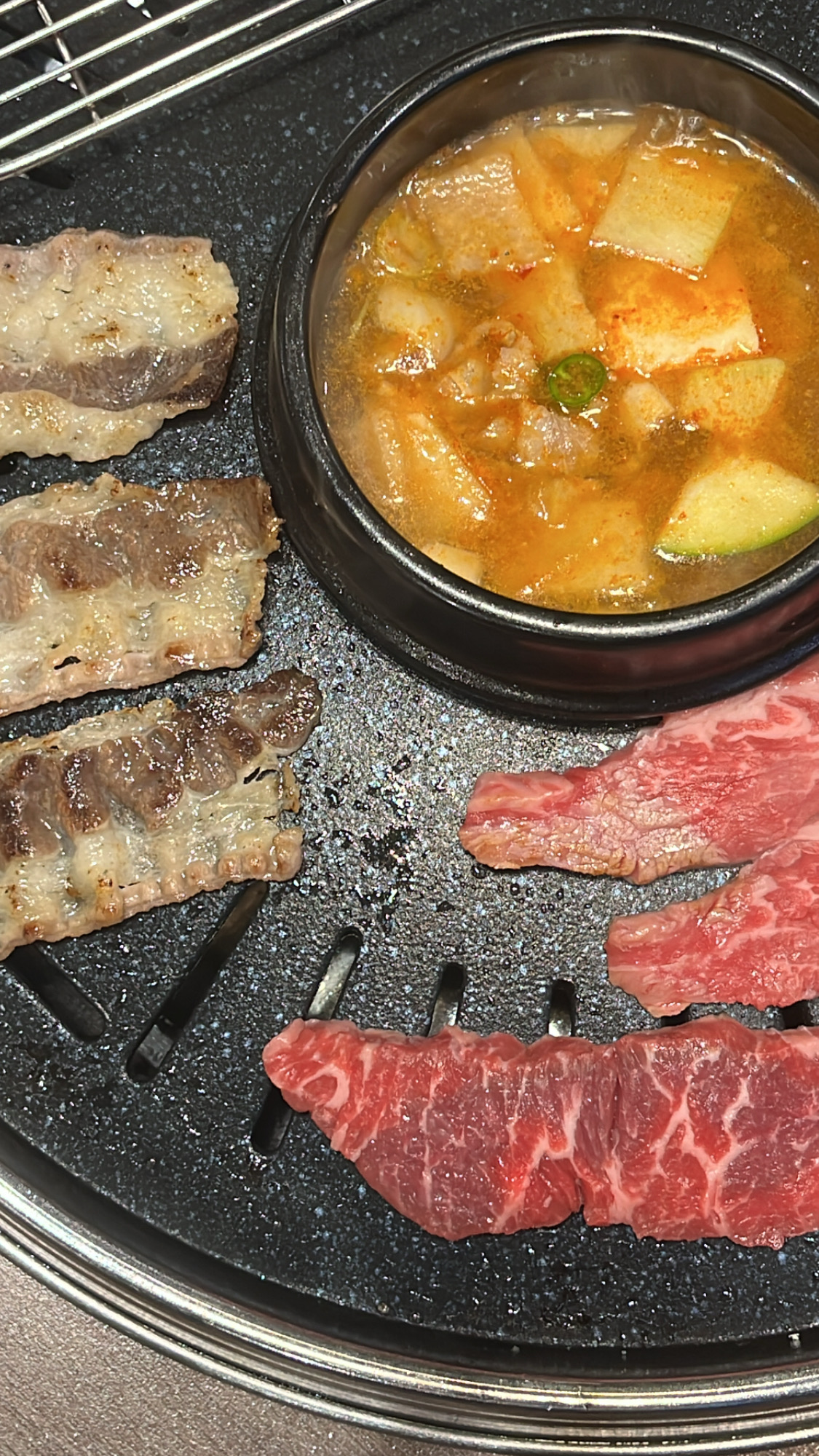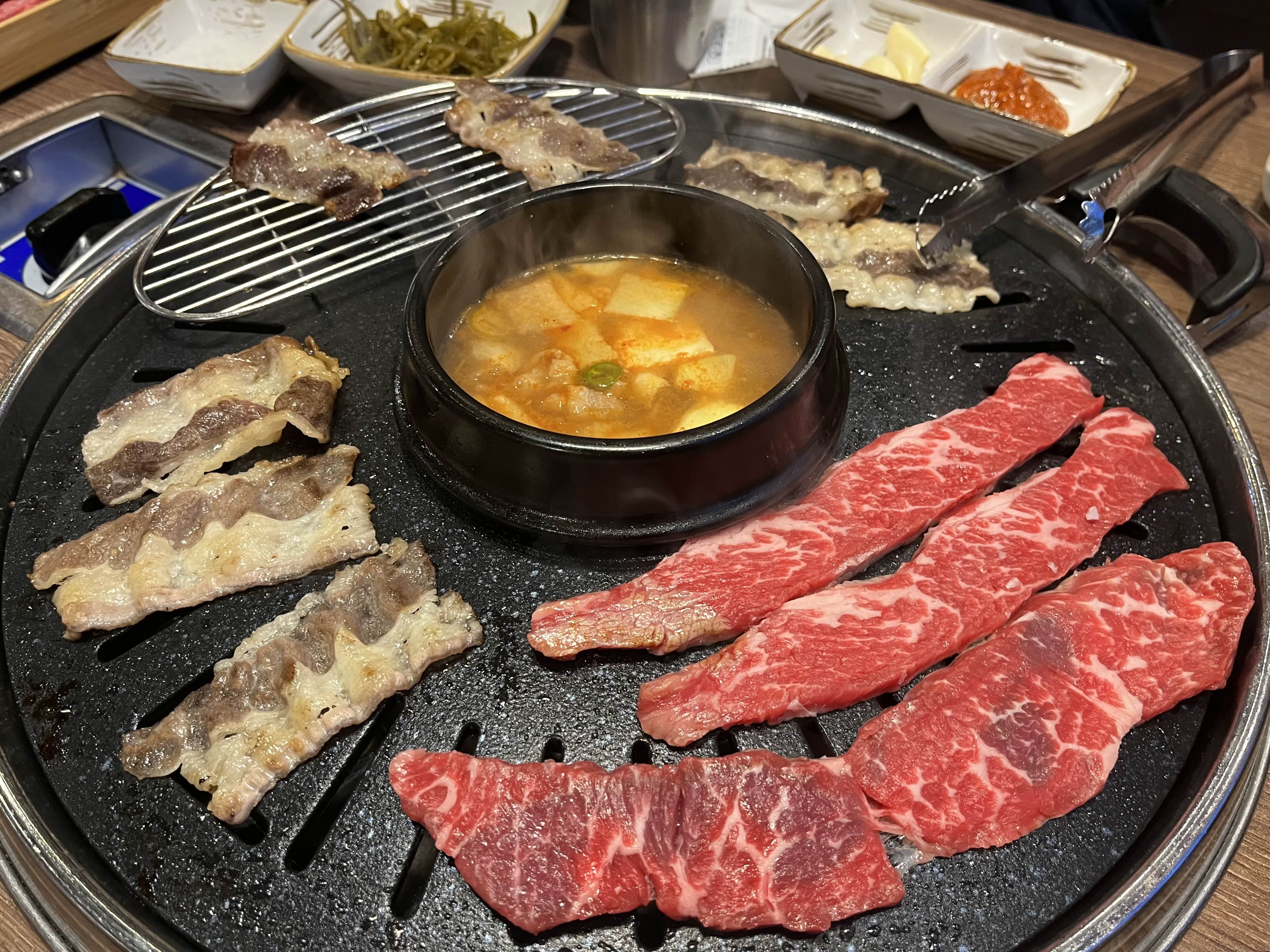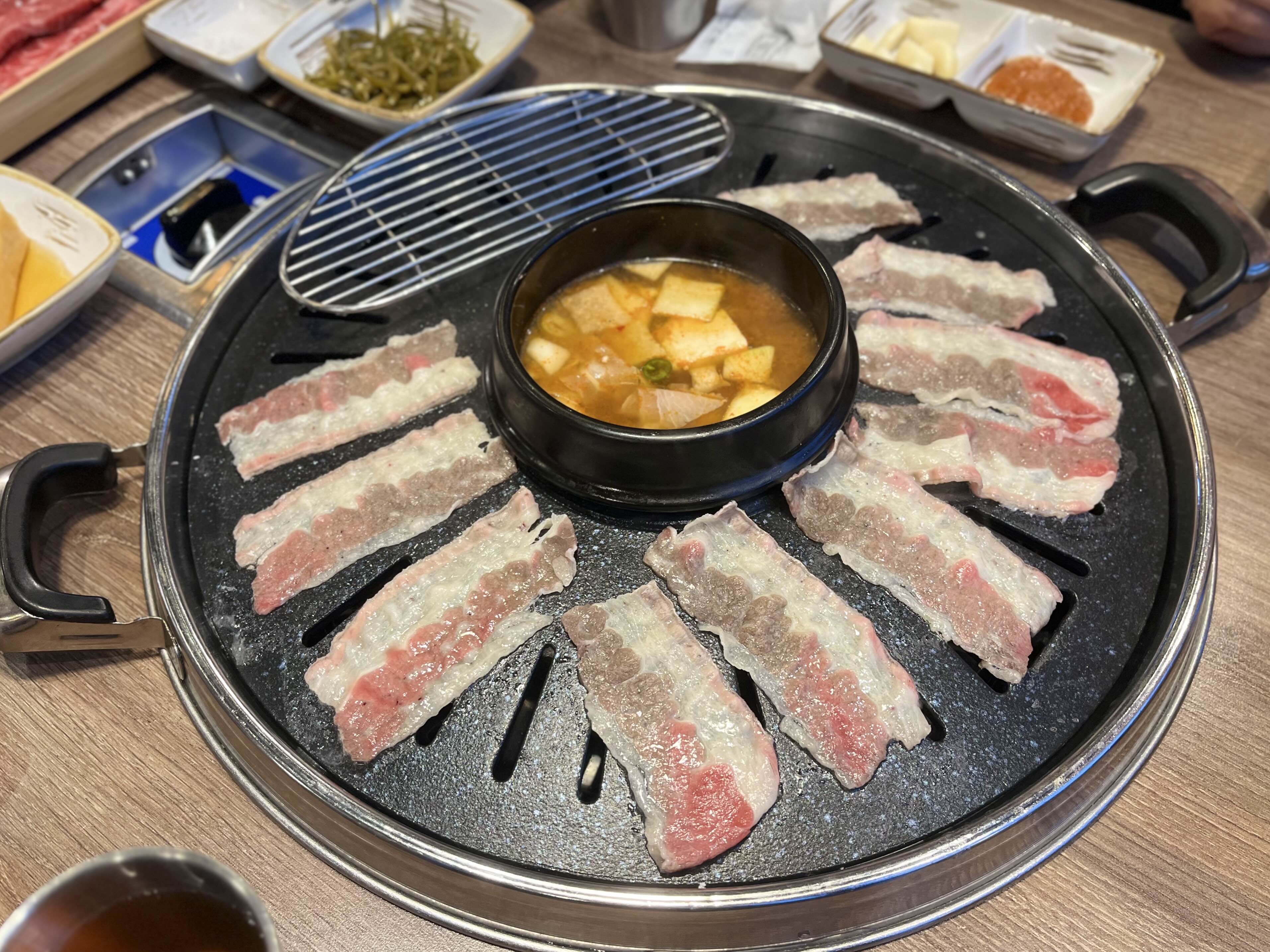 *️⃣가장 먼저 불판 위로 올라간 차돌삼겹