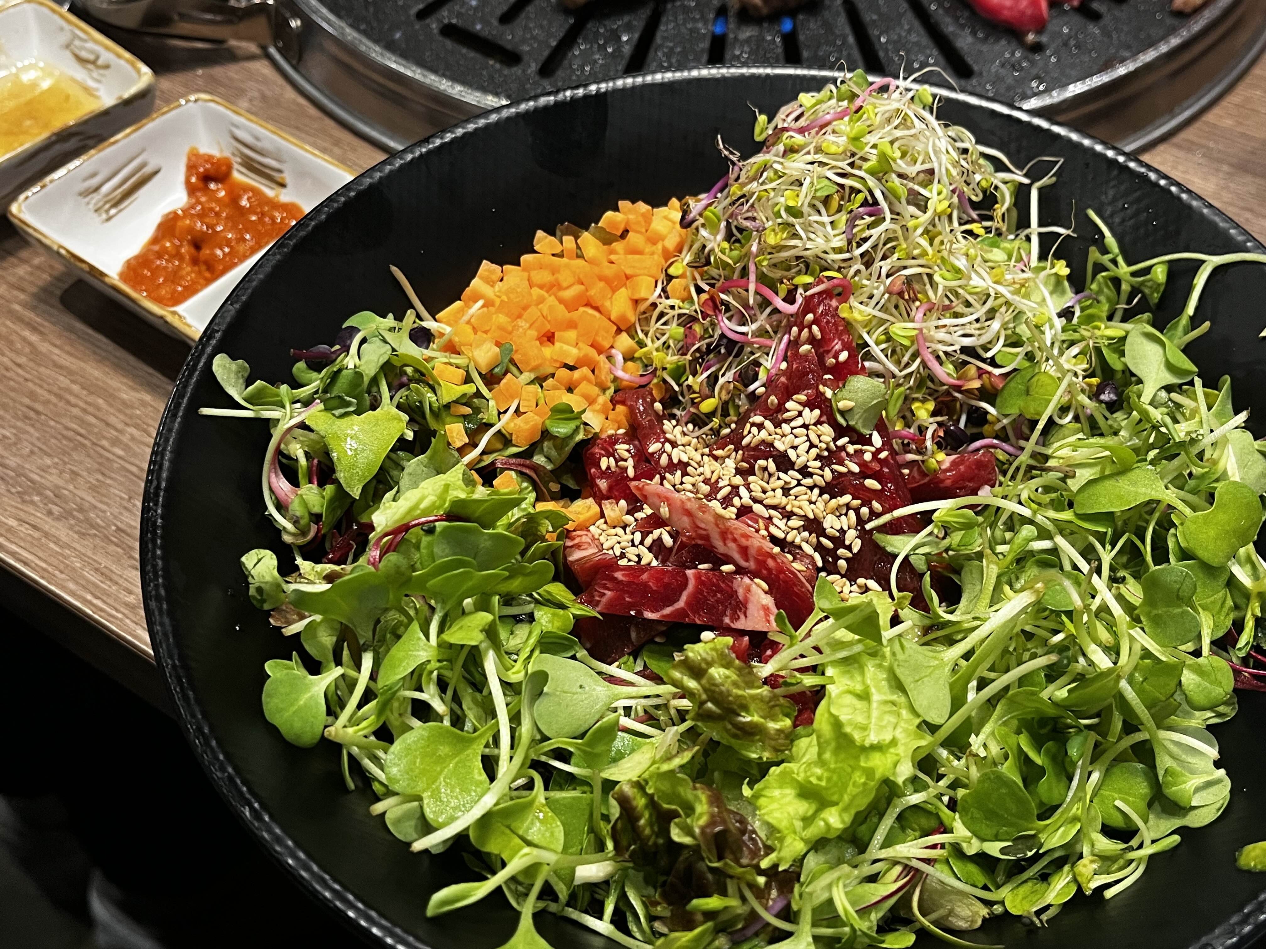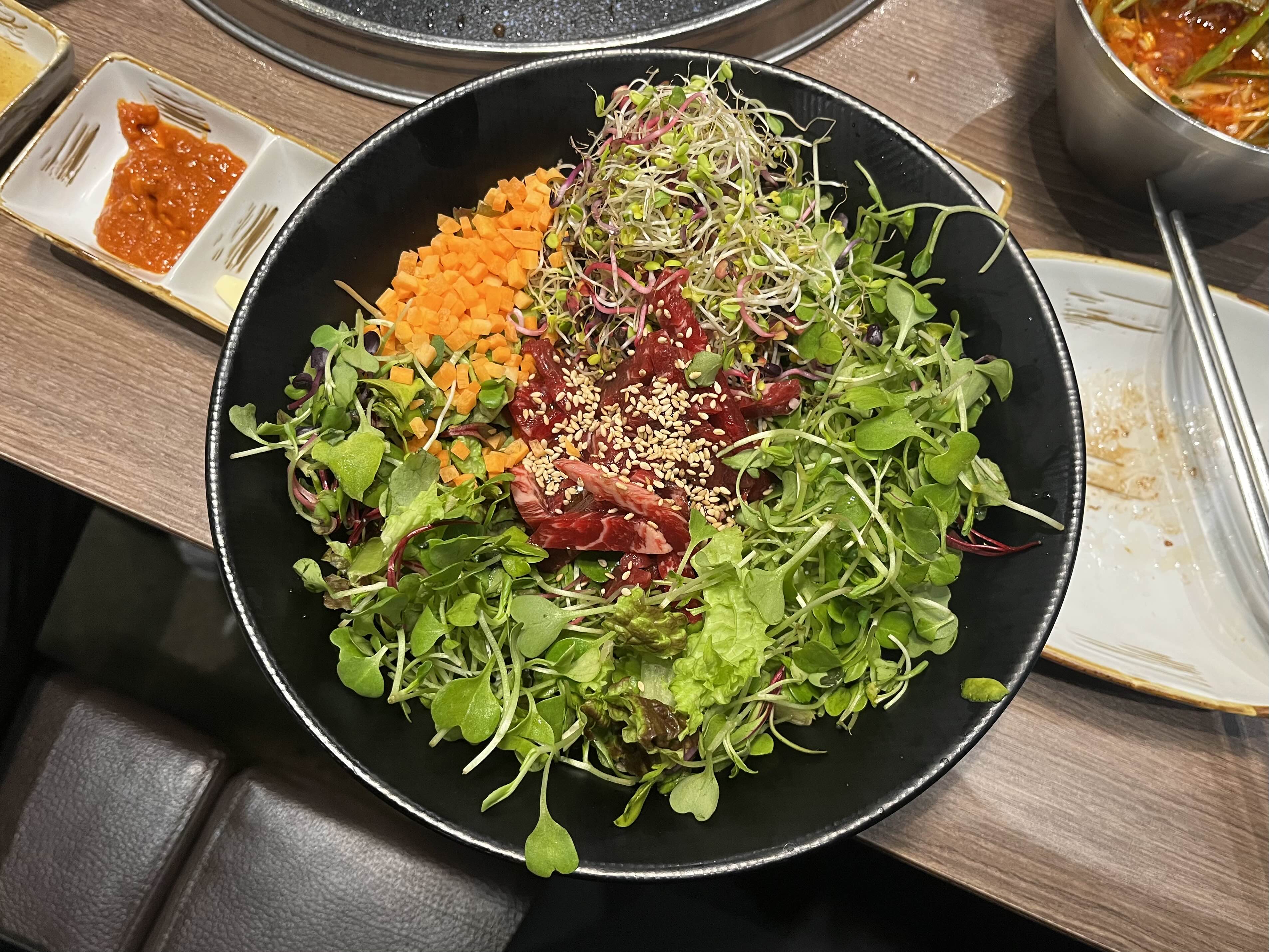 전체적으로 신선한 새싹 + 질 좋은 육회가 푸짐하게 들어있어서 적당히 맛있게 먹었습니다