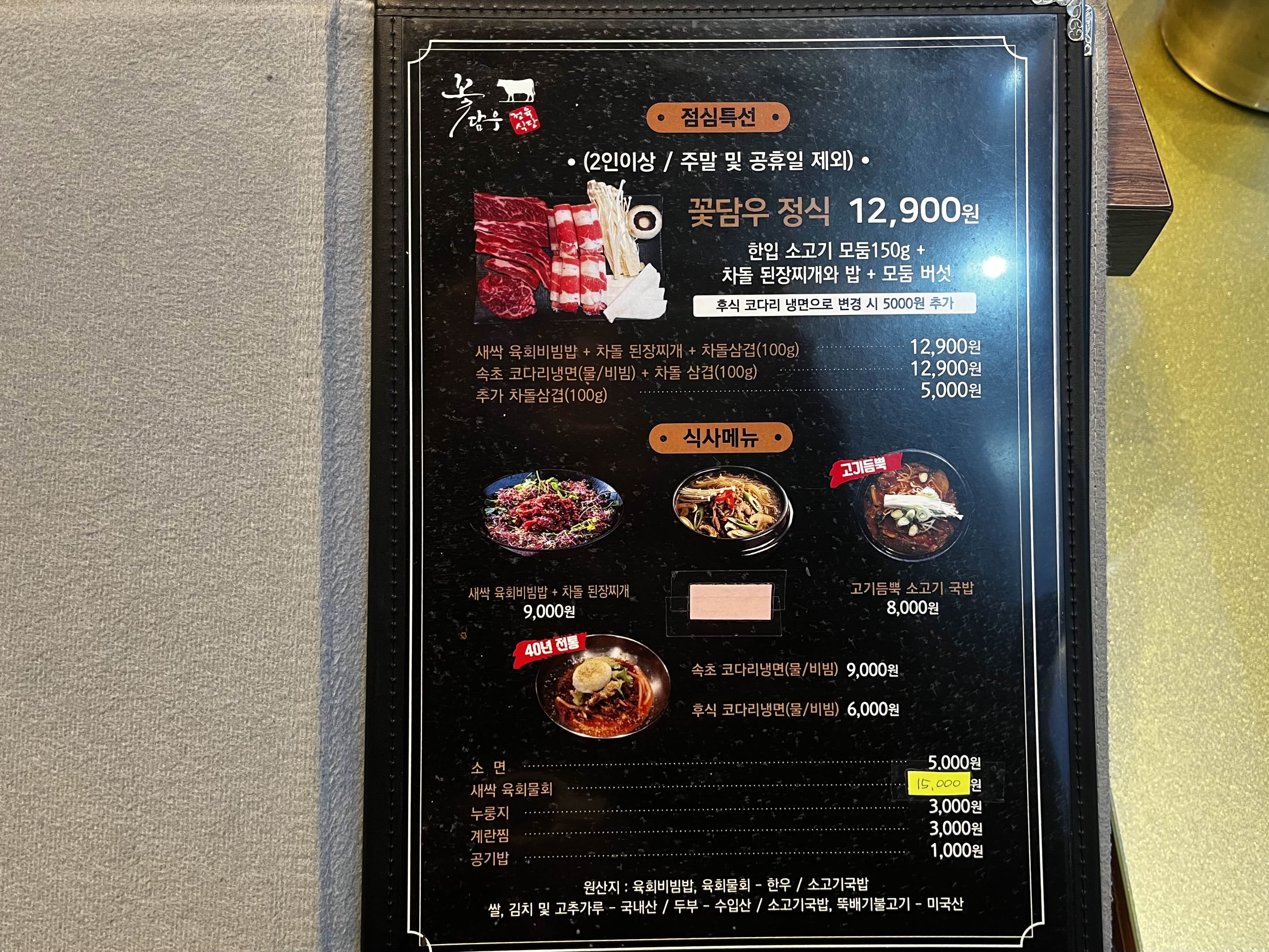 꽃담우는 정육식당인 만큼 고깃값이 저렴한 대신 별도의 상차림 비용이 있습니다🚨