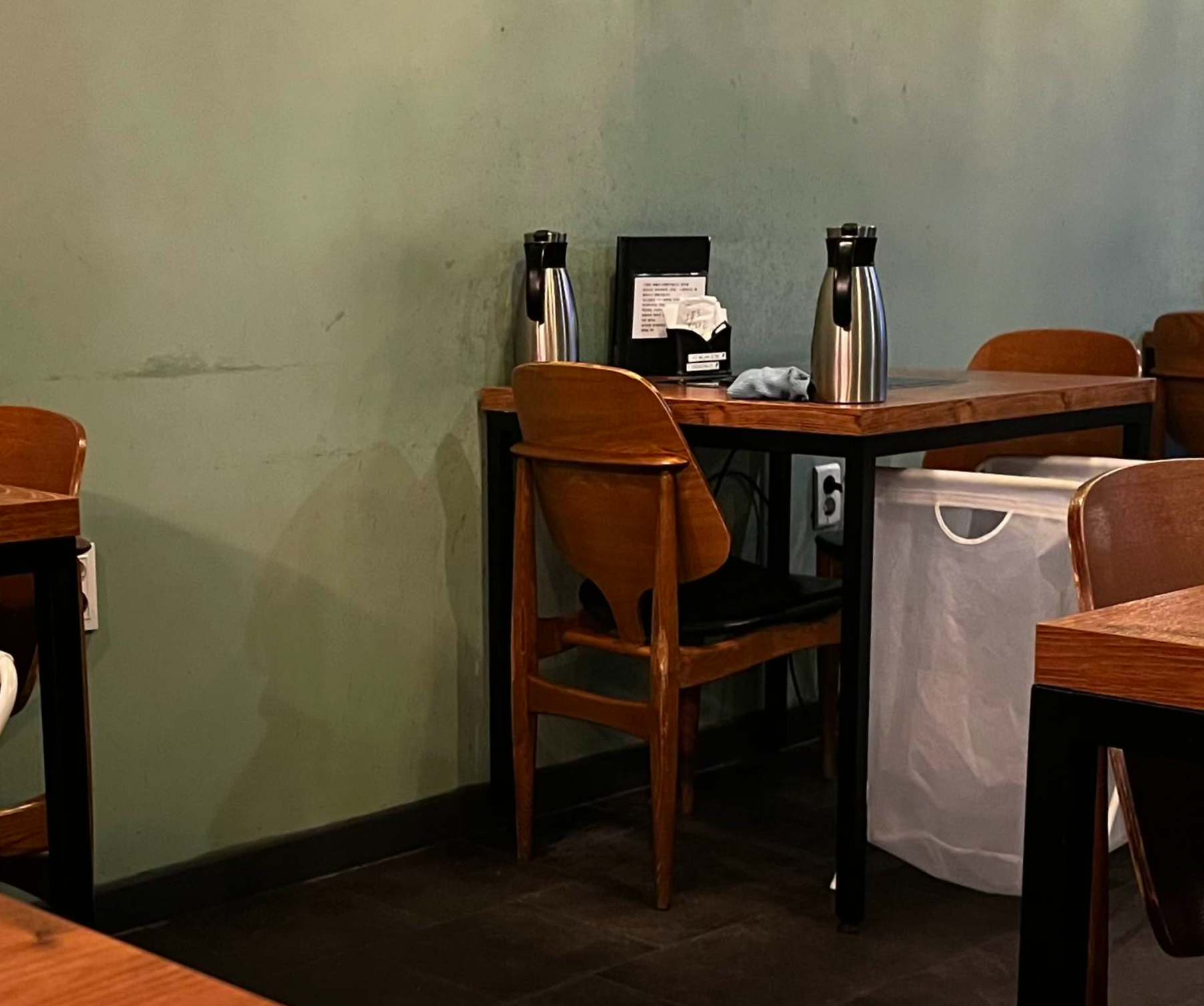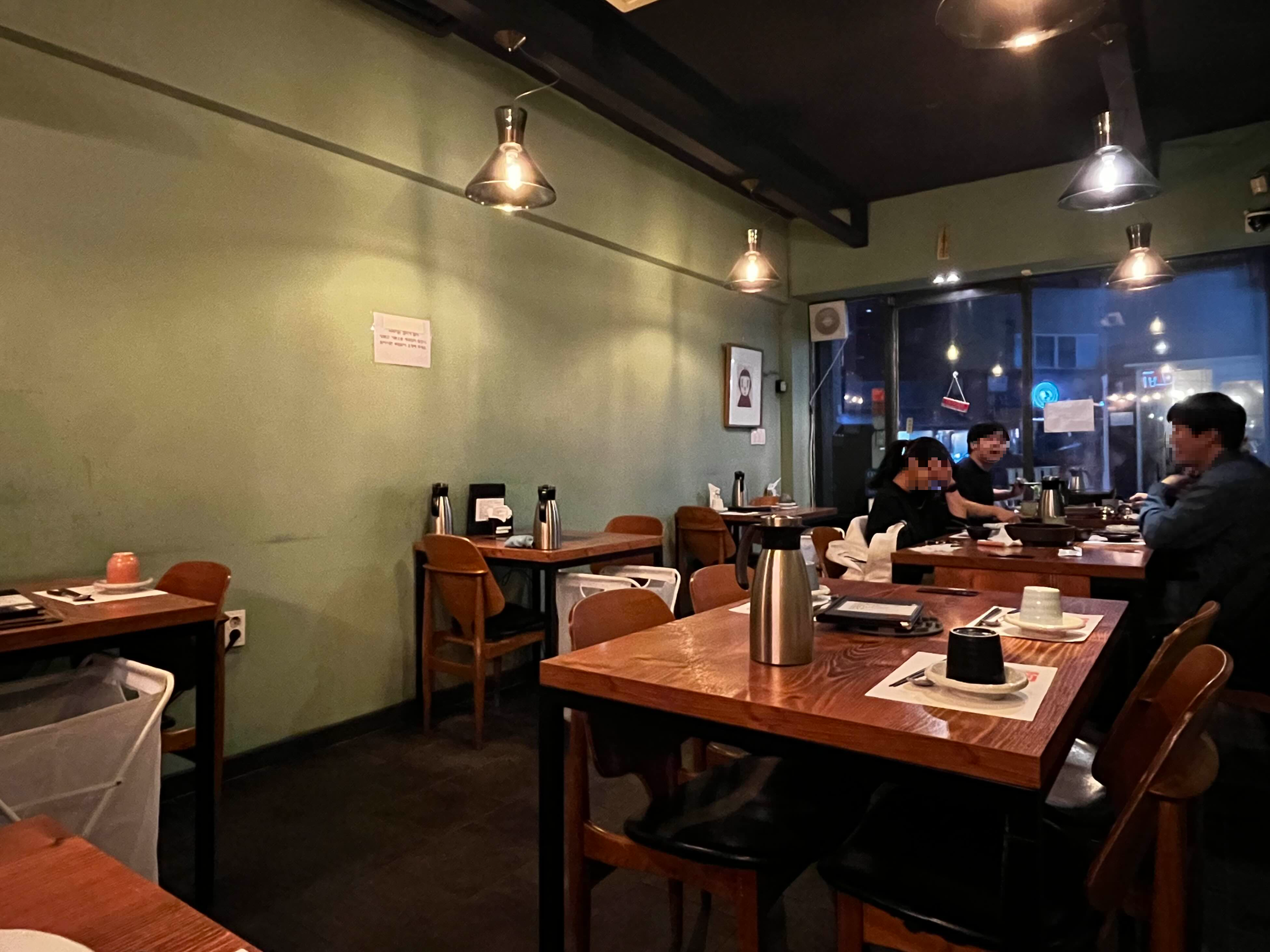 2인 기준 테이블 3개 / 4인 기준 테이블 4개로 구성되어 있고, 각 테이블 간격이 좁은 편!