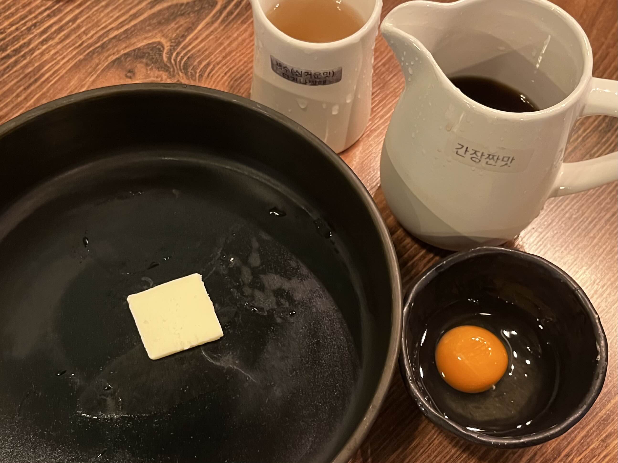 스키야키를 주문하니 직원분께서 소 기름과 버터 중 어떤 기름을 낼지 물어보셨어요