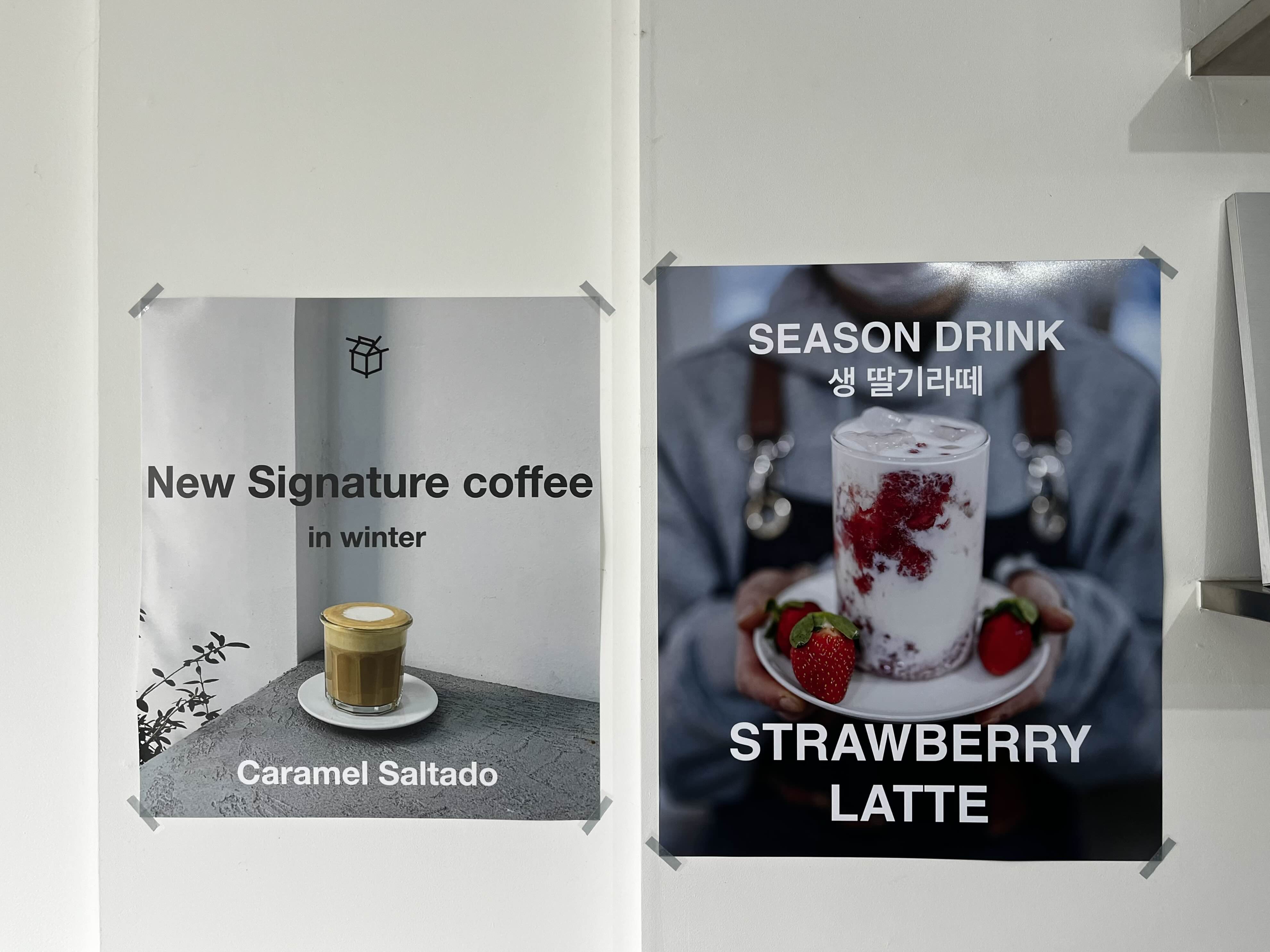 아야커피의 시그니처는 메뉴 앞쪽에 우유모양 로고가 붙어 있으니 참고해 주세요🥛
