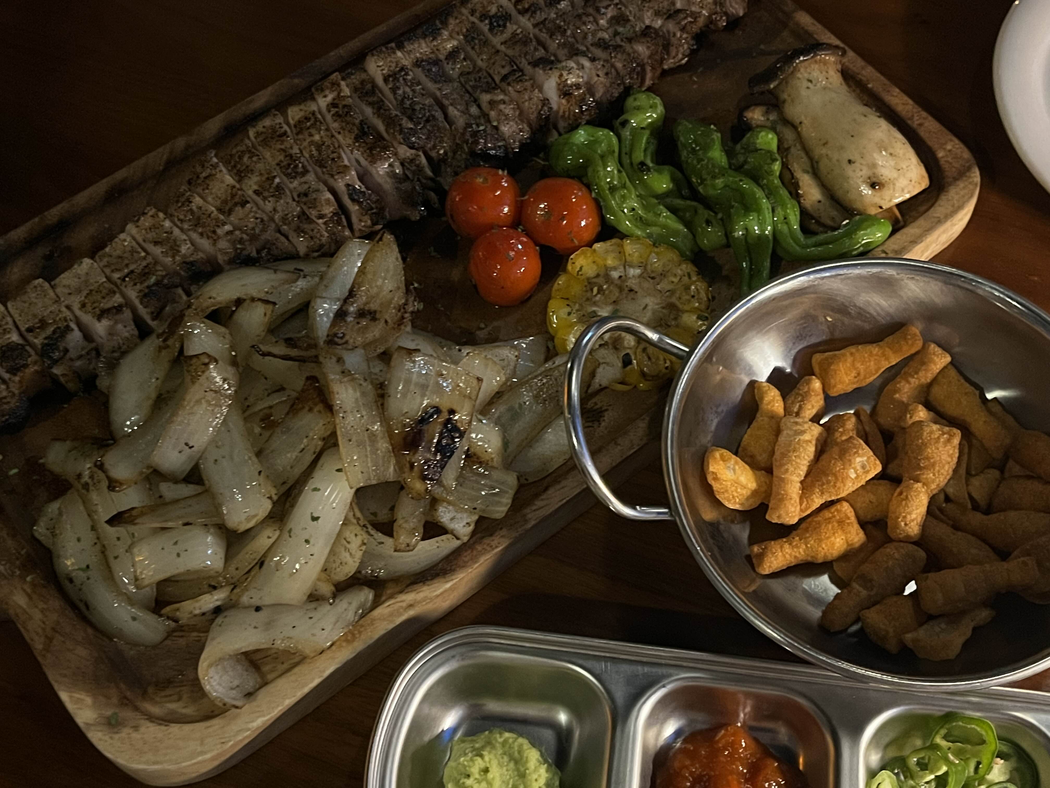 고기만 먹으면 느끼해서 금방 물릴 수도 있는데, 같이 곁들일 여러 종류의 구운 야채들이 함께 나와서 좋았어요