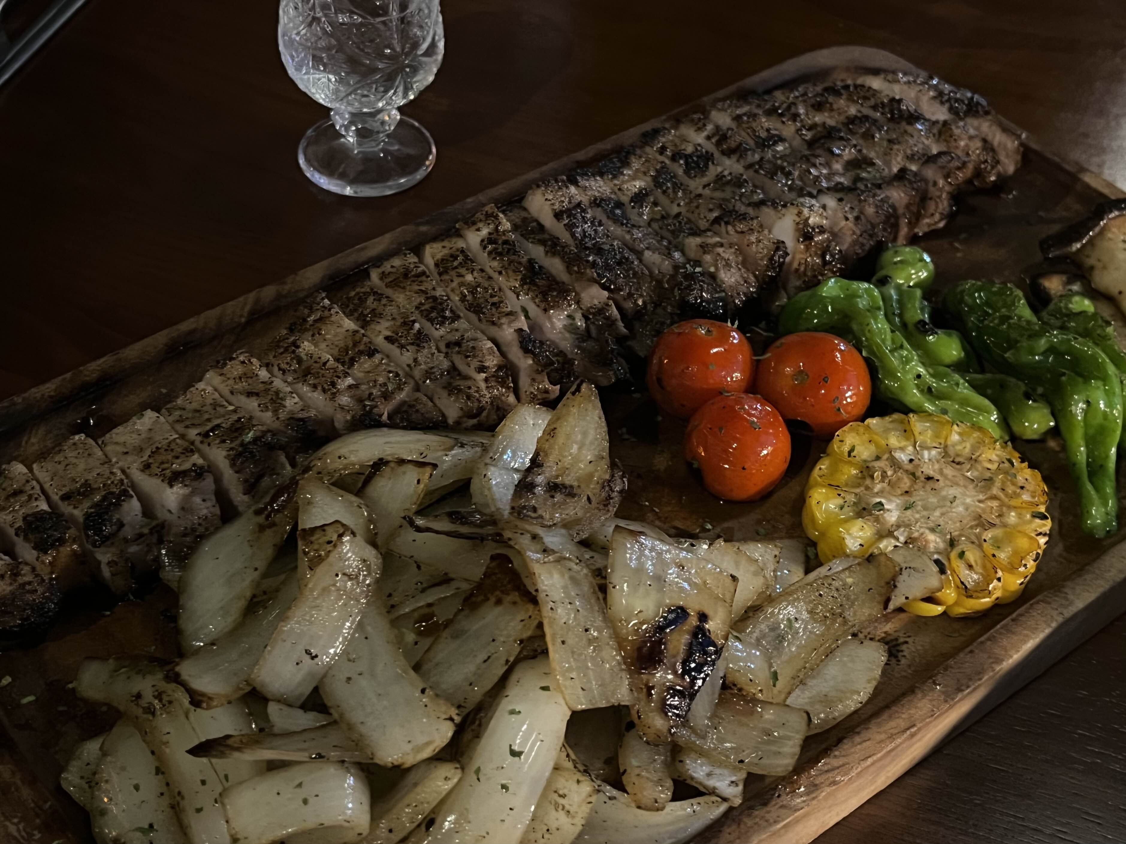 함께 플레이팅 된 가니쉬 종류는 양파 / 옥수수 / 꽈리고추 / 토마토🧅🌽🌶️🍅