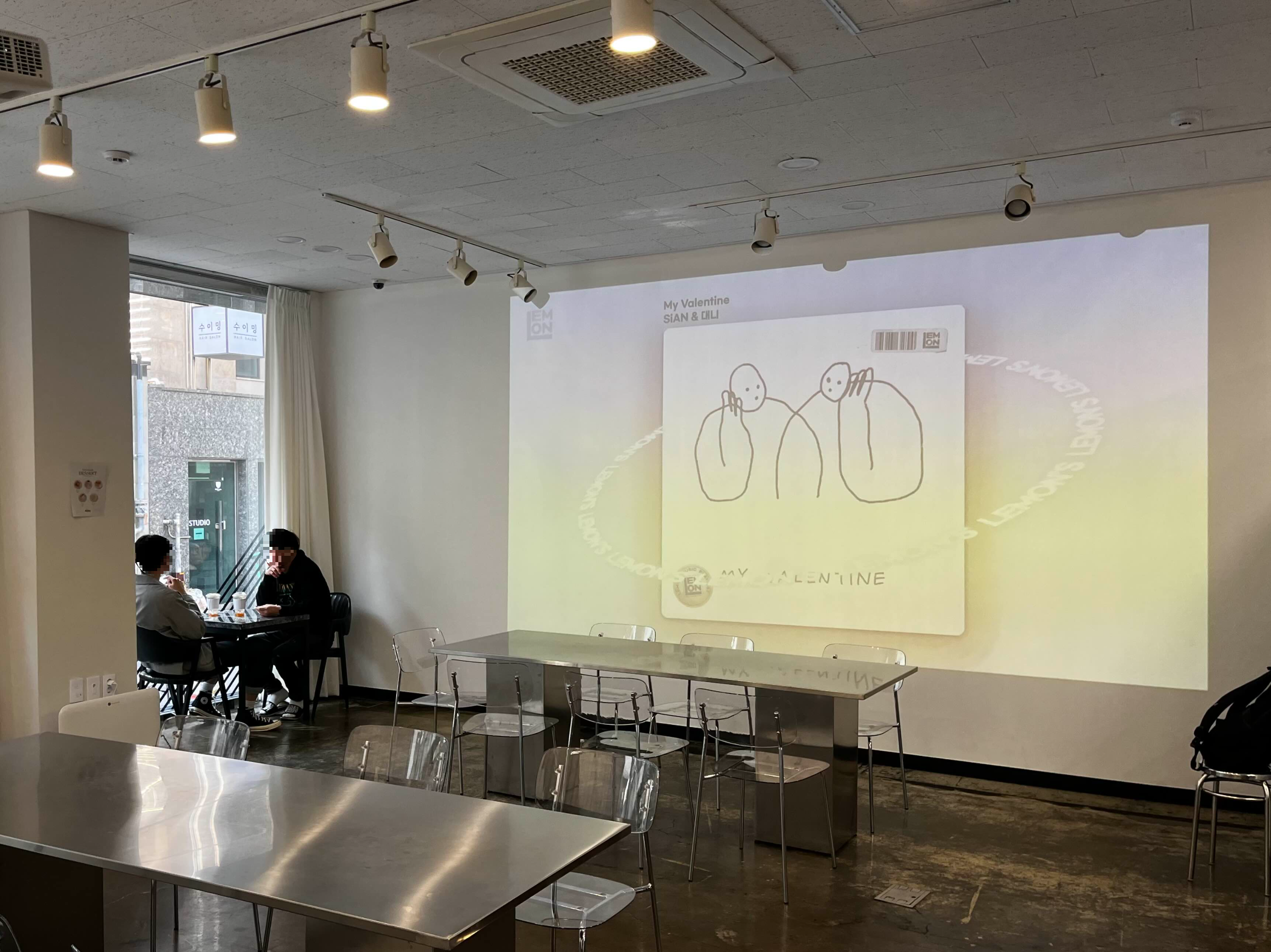 그리고 화이트톤으로 된 한쪽 벽면으로는 빔으로 영상이 송출되고 있습니다📽️
