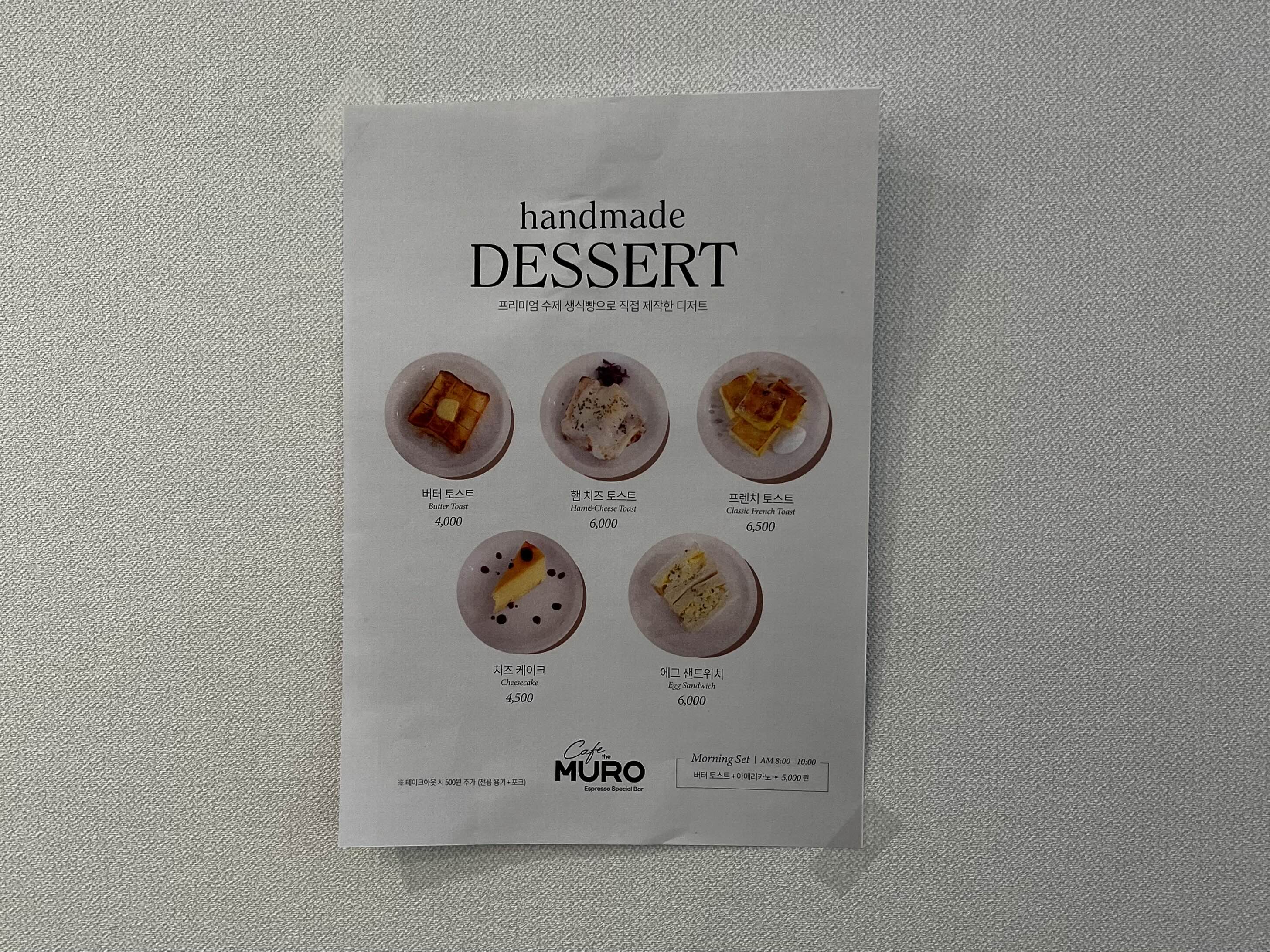 카페 더 무로의 전체메뉴입니다