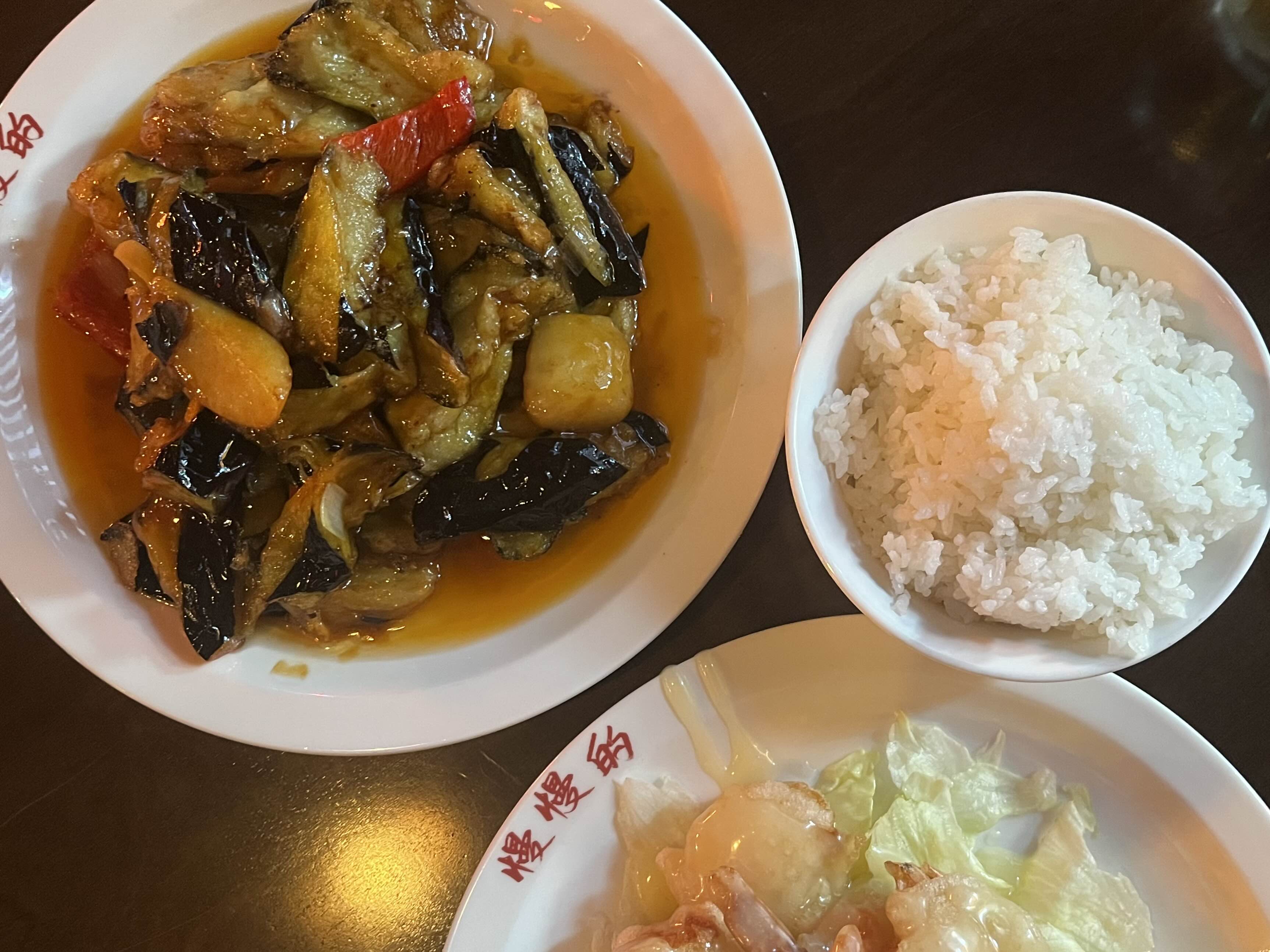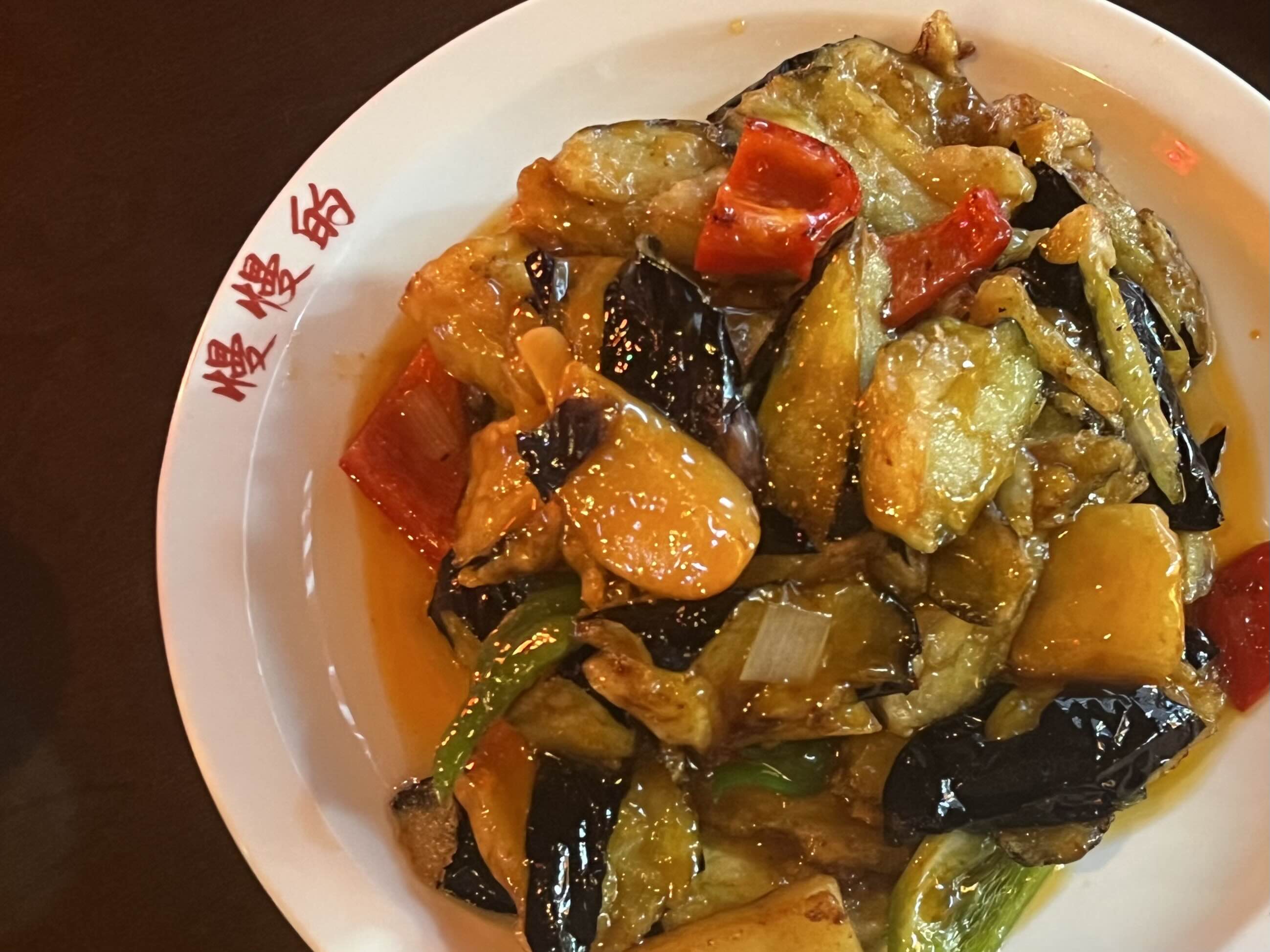 가지 / 감자 / 피망을 튀기고 볶아 만들어진 달큰한 요리라고 합니다