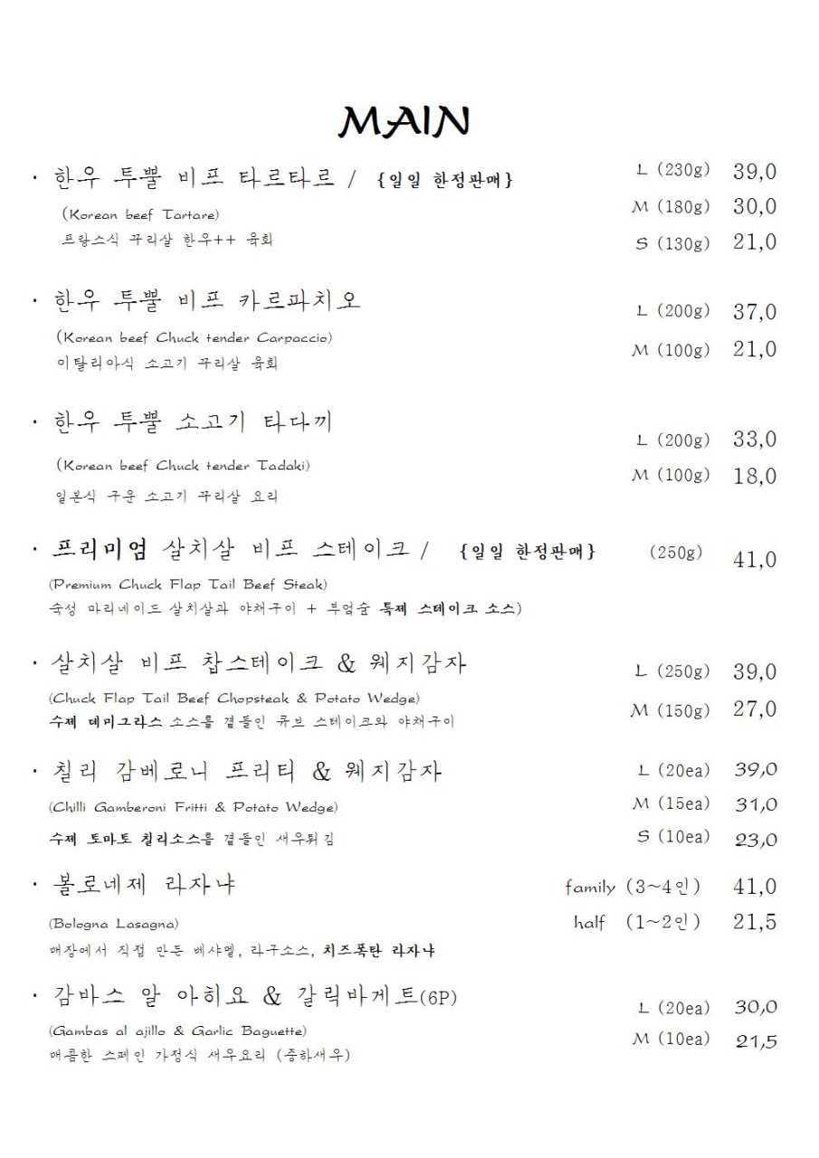 마지막으로, 주류 메뉴입니다
