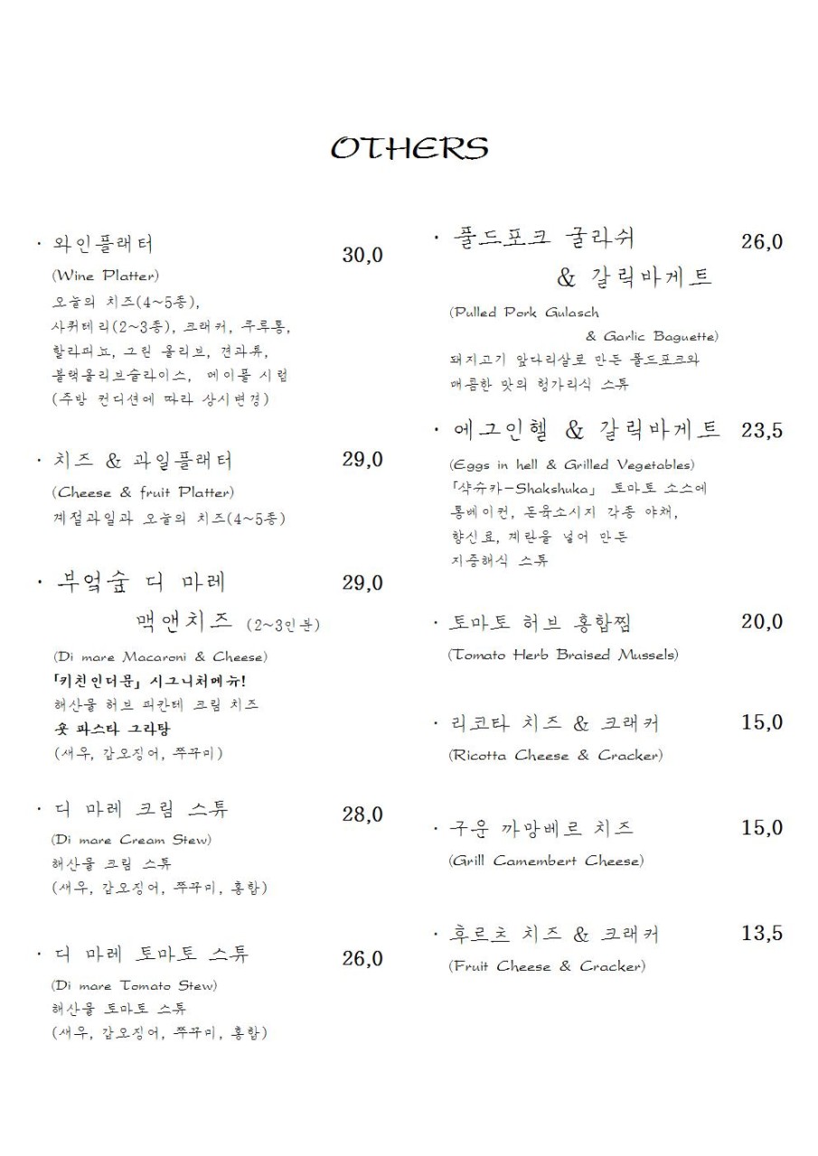 - 영업시간 : 매일 17:00 ~ 새벽 02:00 매주 일요일 & 매월 첫째 주 월요일 정기휴무