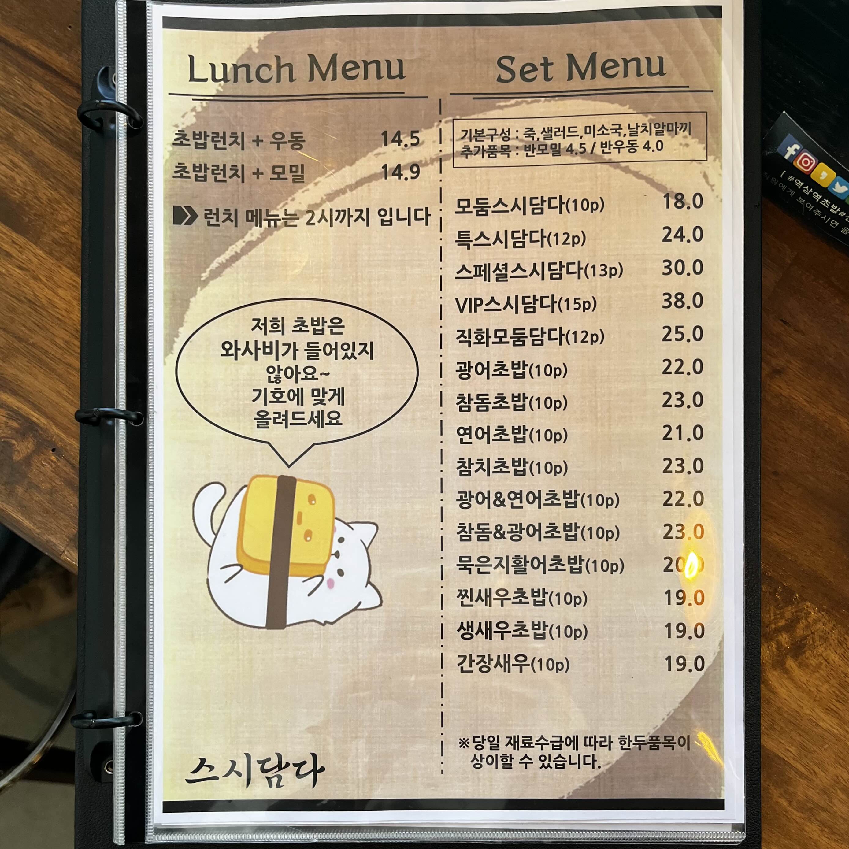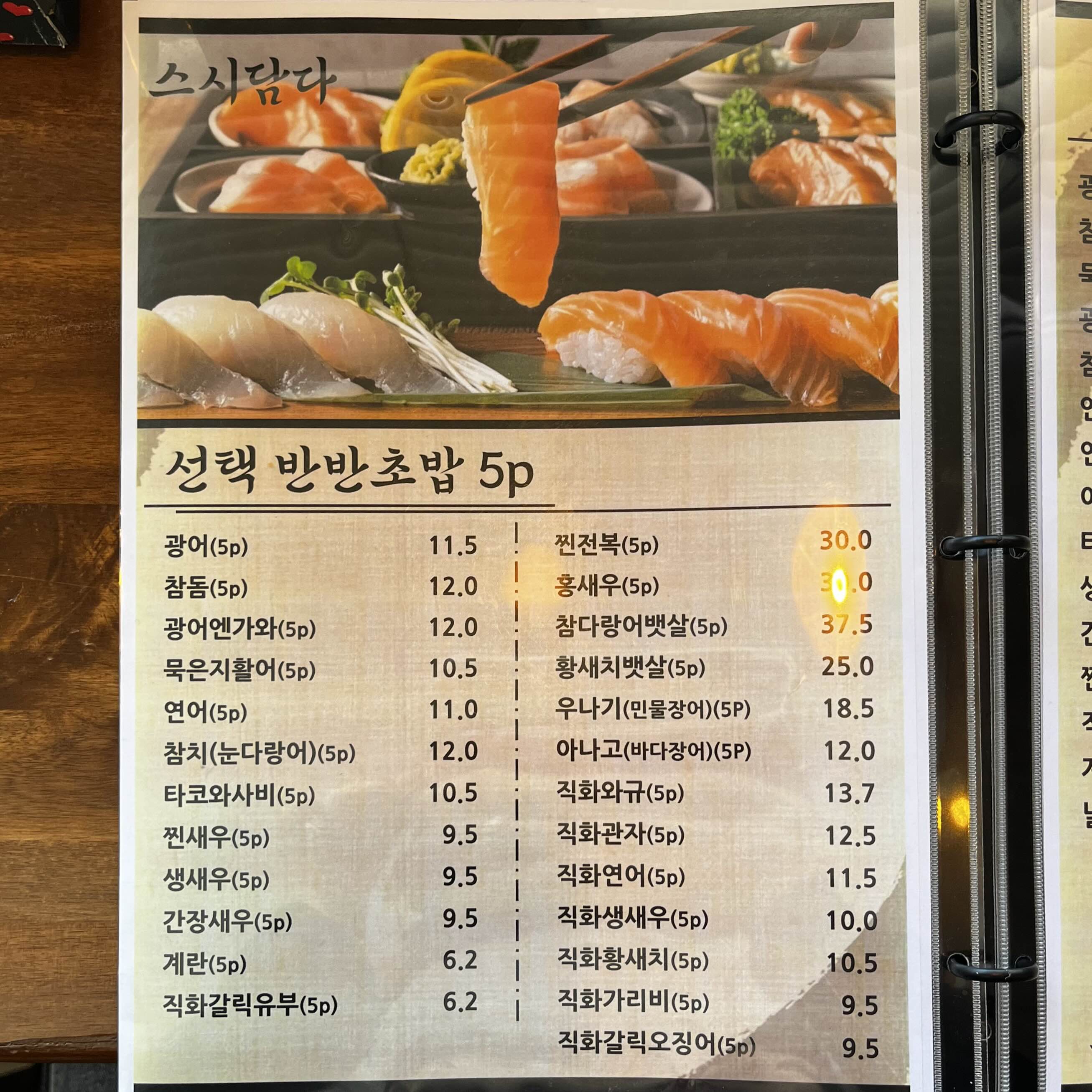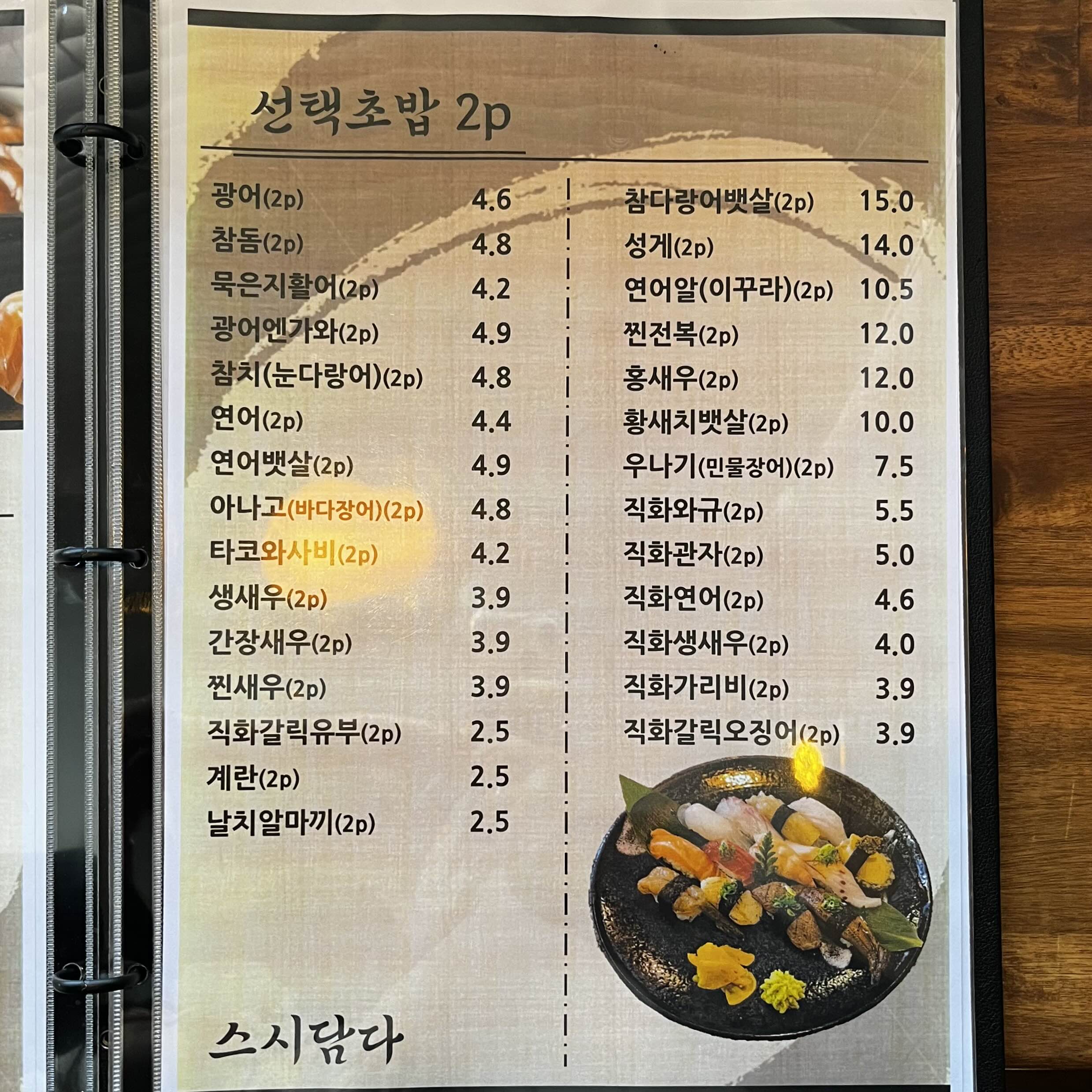 스시담다 메뉴 소개입니다