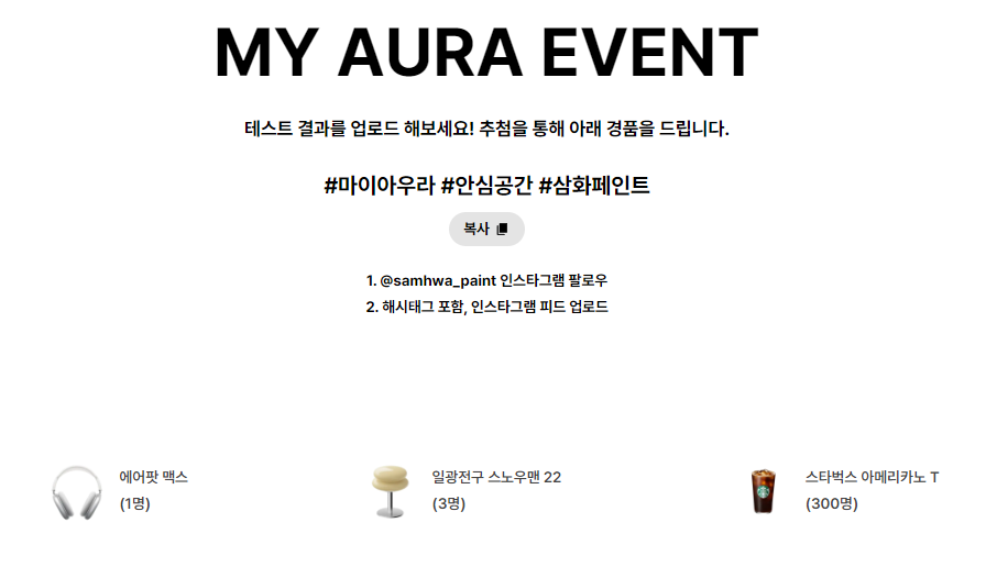 삼화페인트에서 이번 AURA를 주제로 재밌는 팝업행사를 열었습니다🎊🎉