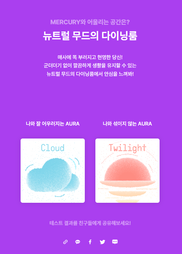 이번 테스트는 각 질문에 있어 스스로에 대한 취향과 감각을 생각해 볼 수 있었던 색다른 테스트였던 것 같아요