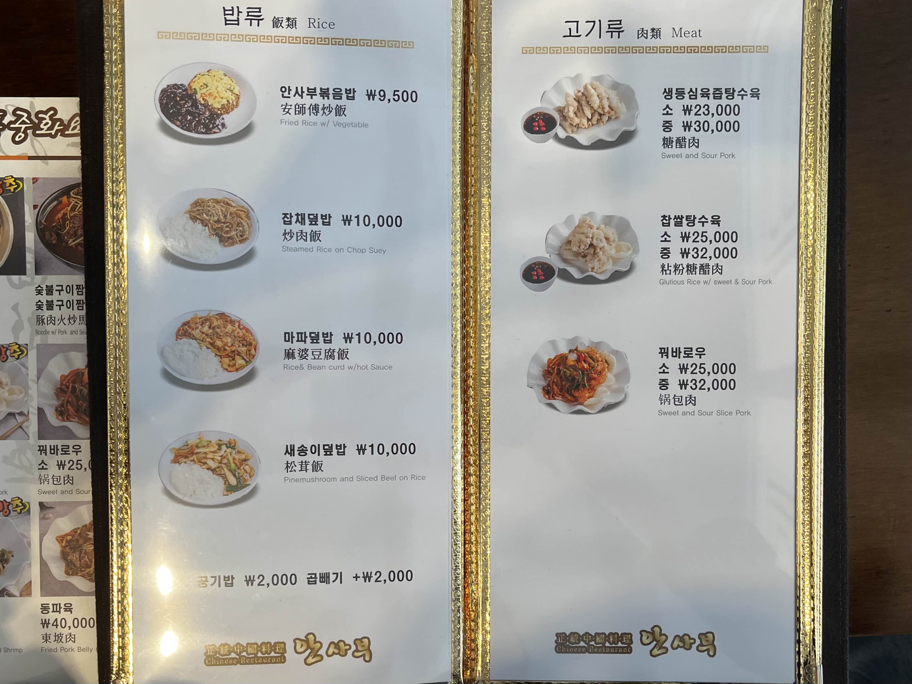 그 외에도 밥류 / 새우류 / 고기류 / 닭고기류 등 깔끔하게 나누어진 다양한 중화요리 메뉴들🌈✨