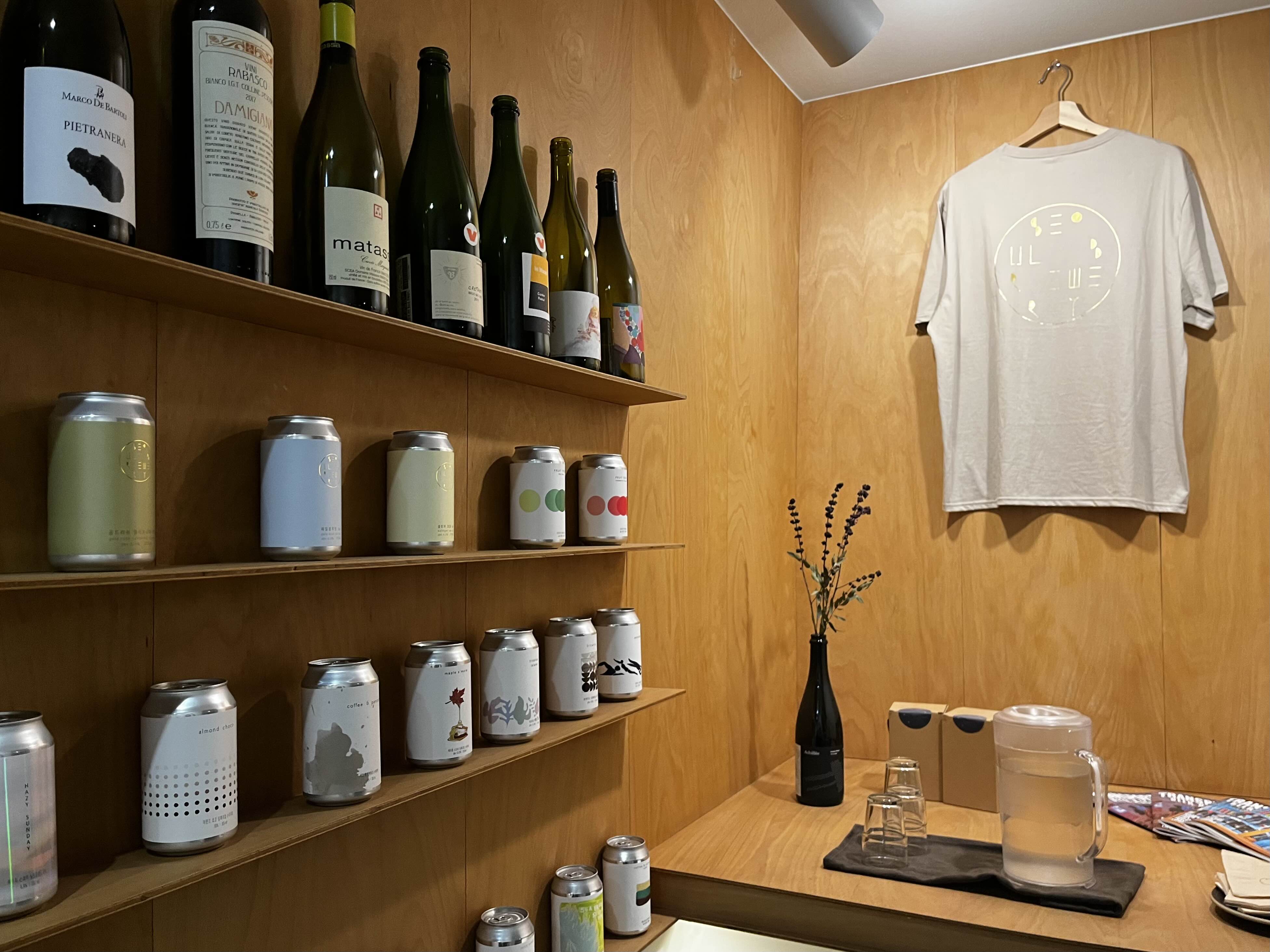 서울브루어리의 다양한 디자인 캔맥주들과 굿즈로 디피되어 있습니다